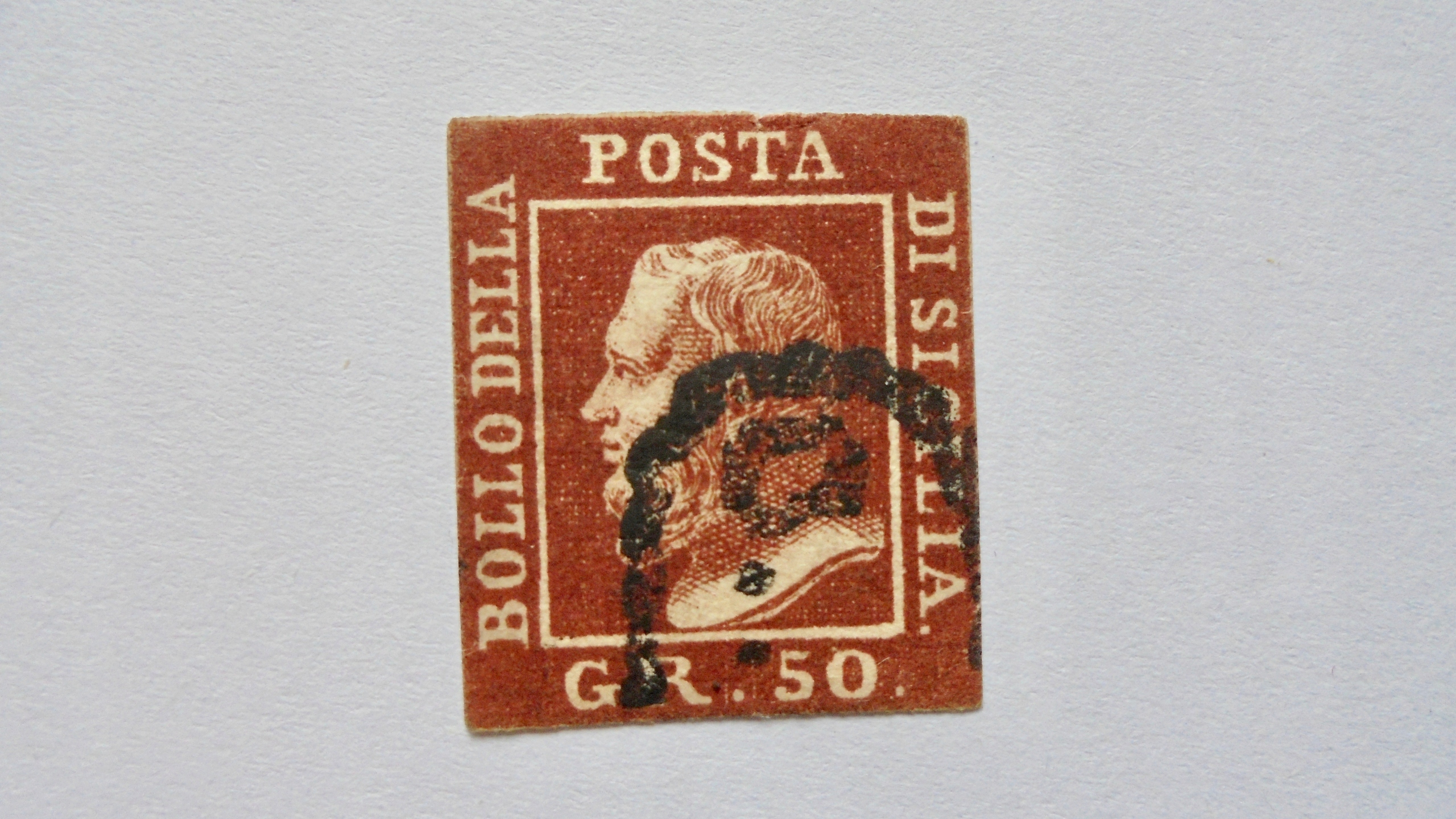 1859 Włochy-Sycylia Mi.7 kasowany znaczek, stan dobry. Wartość 5000,- Euro.