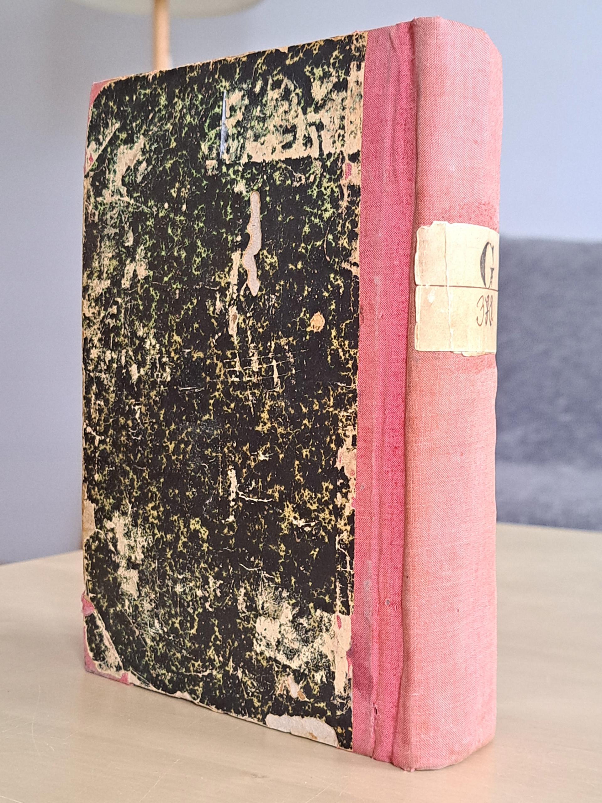 Стан: хороший. Послідовний книжковий блок. У деяких місцях сторінки знебарвлені через старіння. Книга має штампи. У тексті зроблені підкреслення олівцем. Кілька сторінок вирвано. Бібліотечний ярлик на корінці. Новий палітурний папір. Матеріальні втрати на рамах. Два томи в одній палітурці.