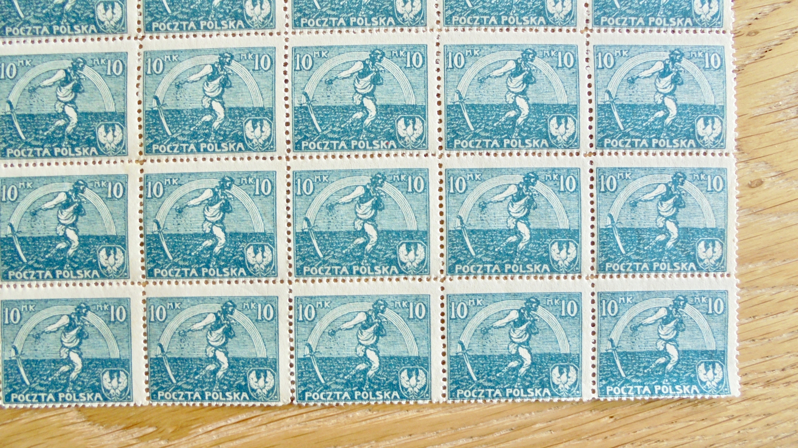 1921 Polska Fi.125* część ARKUSZA 32 czyste znaczki z gumą, stan dobry