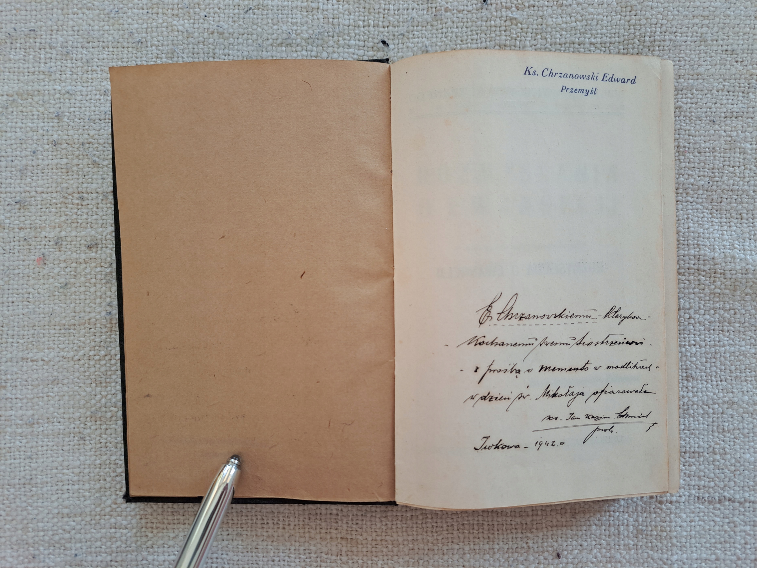Стан: дуже добрий. Послідовний книжковий блок. Сторінки знебарвлені з віком. На сторінках є штампи. Книжковий блок кривий. Присвята на передтитульній сторінці з датою 1942 р.