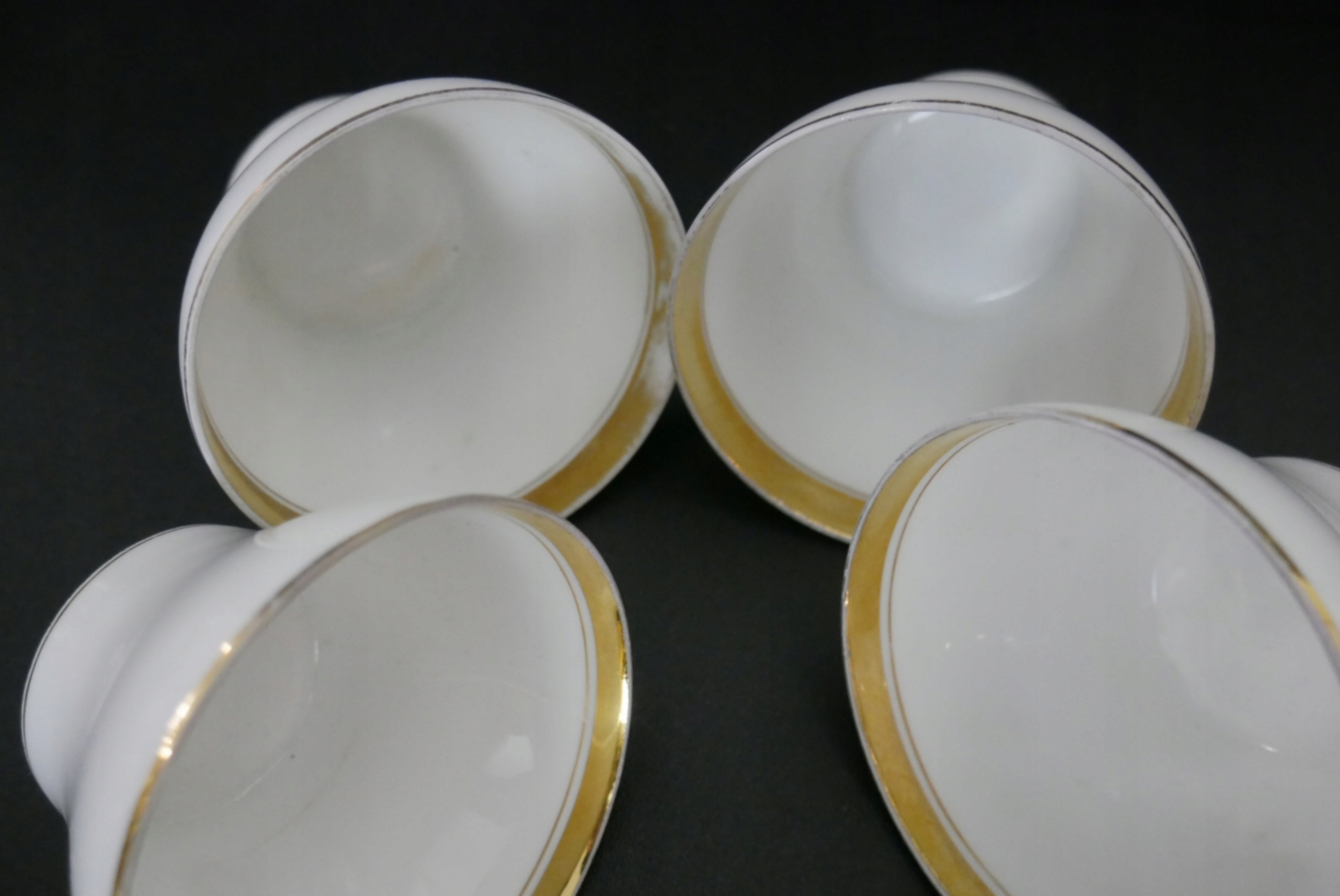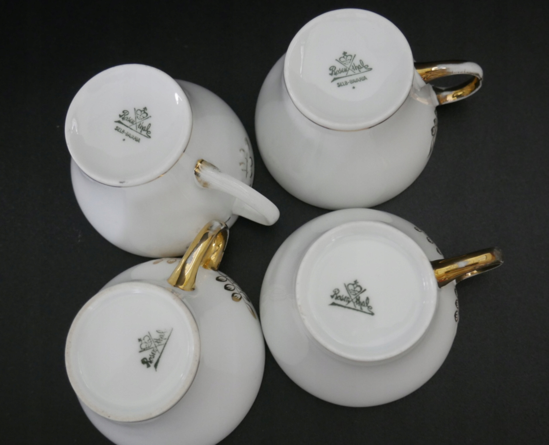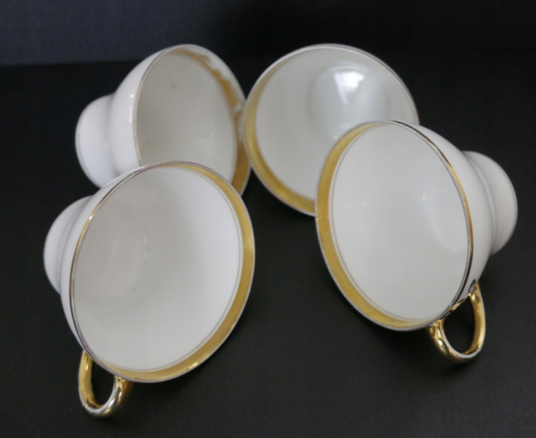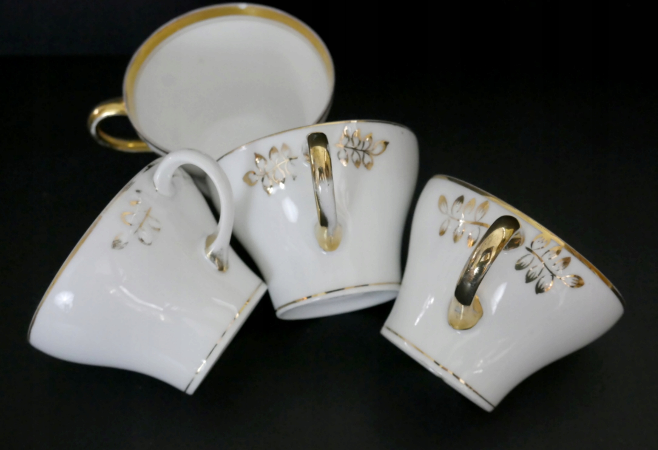 1 чашка має скол, 1 значне потертість позолоти, 1 чашка класифікована як хороша, має нерівності на обідку, незначне потовщення - фабричне виготовлення