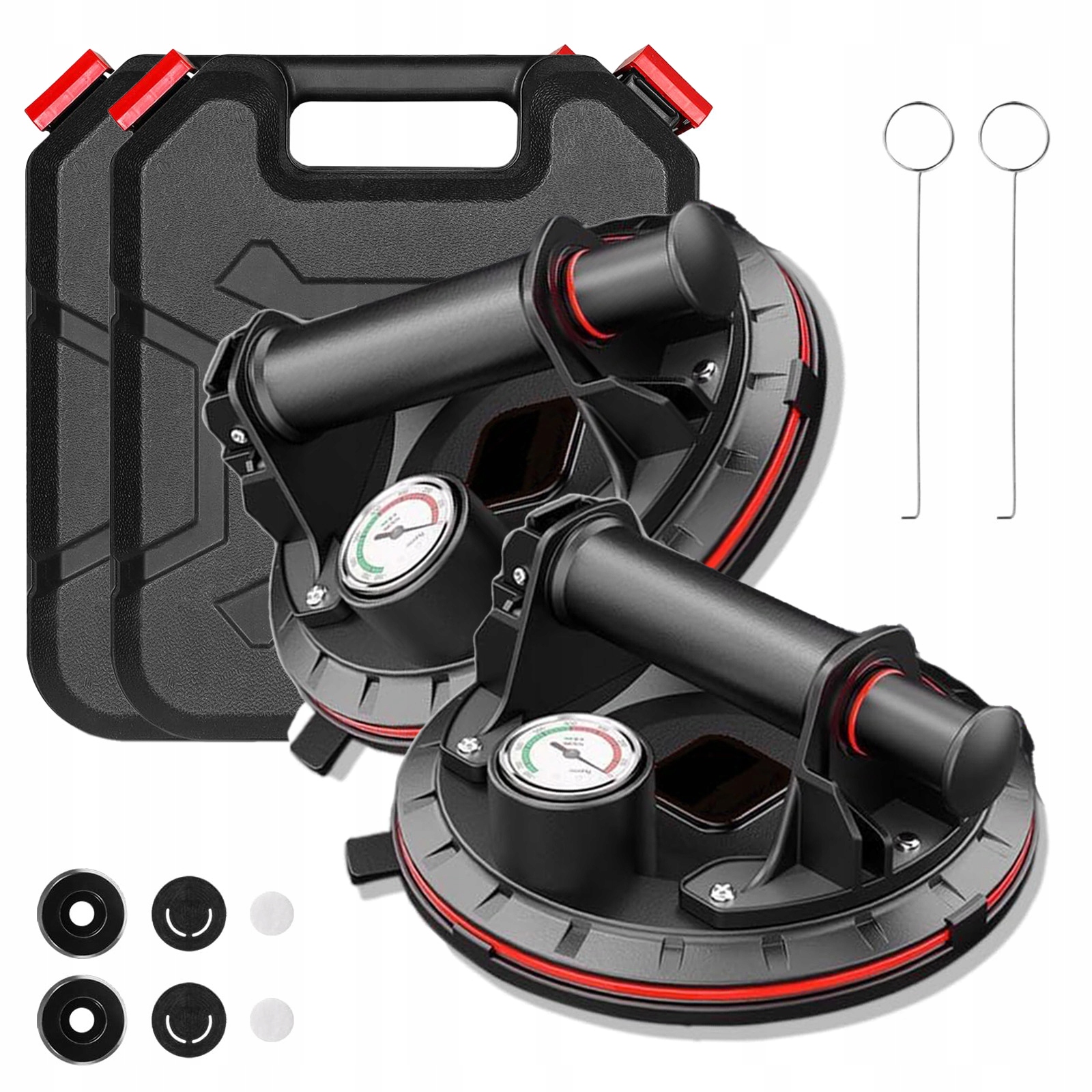 ✅2 x 8-дюймові присосні чашки з манометром тиску: присосна чашка була вдосконалена для моніторингу стану адсорбції в режимі реального часу та запобігання падіння адсорбованого матеріалу через недостатній тиск, що збільшує безпеку використання.