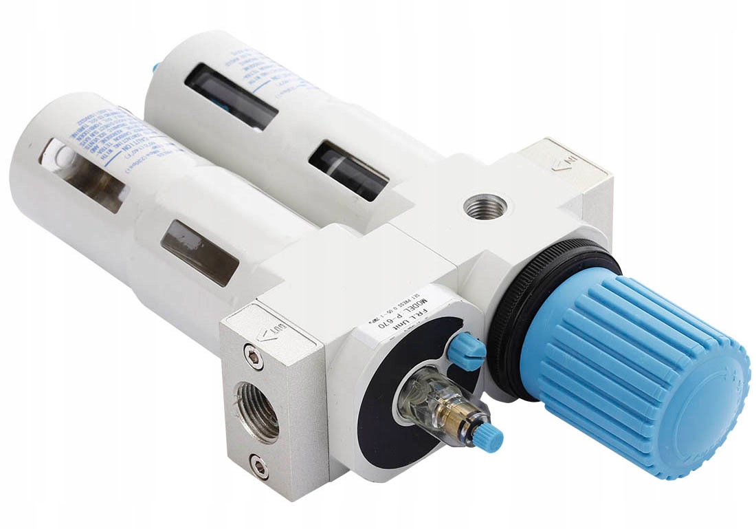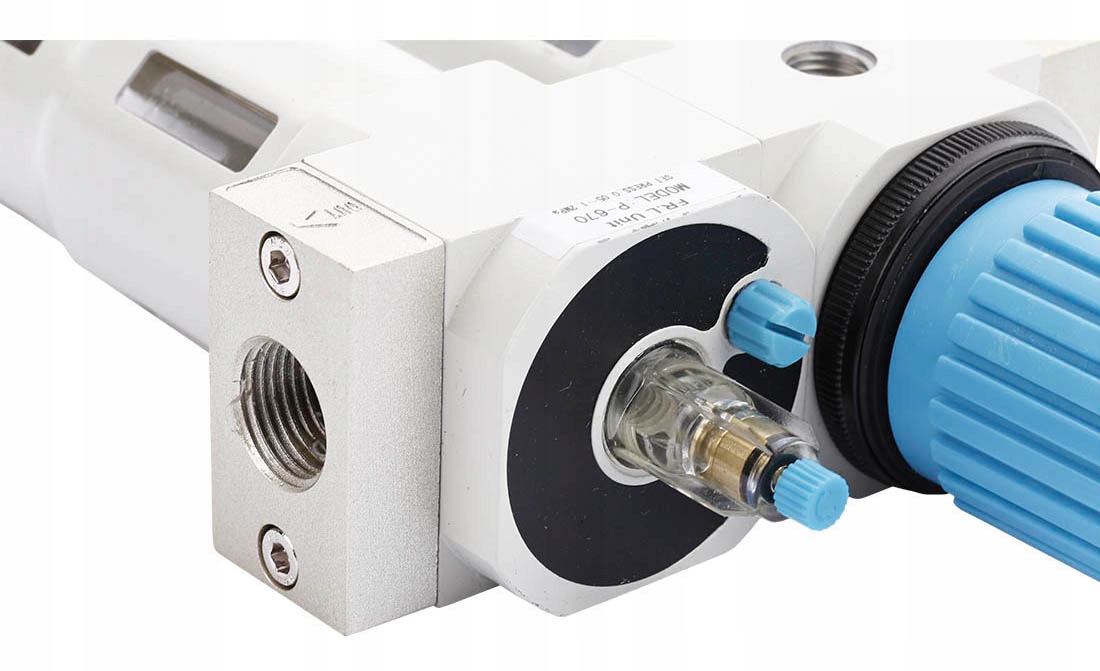 Повітряний блок використовується для регулювання робочого тиску в системах стисненого повітря та компенсації будь -яких відхилень тиску. Блок містить сепаратор води, очищає стиснене повітря масляної, конденсату та твердих частинок. Використовується для розміщення постачання приймачів, що потребують змащування.