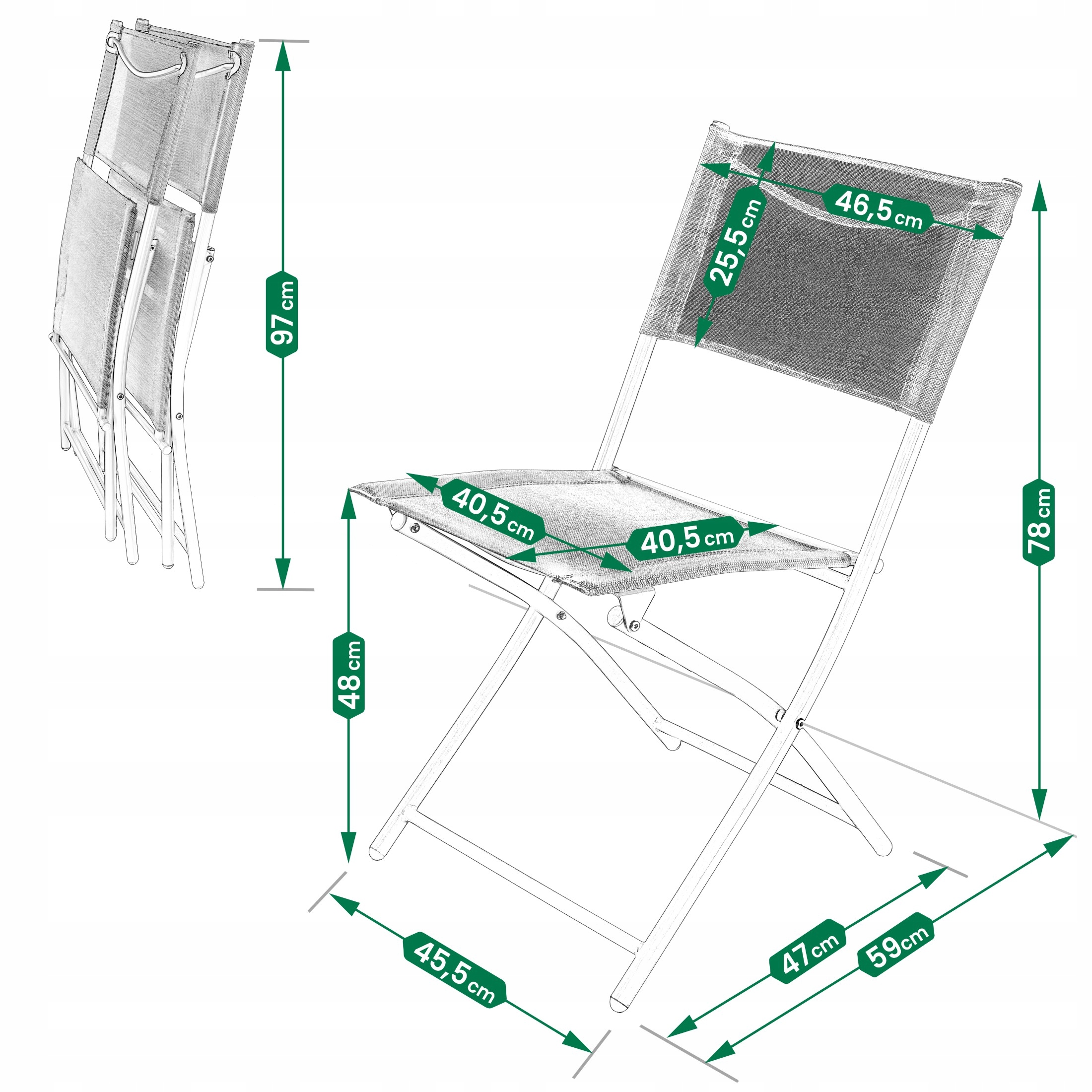 ➡ профільований спинка та сидіння з дихаючим текстилем - ідеально підходить для теплих днів. Можливість складання робить їх після сезону, вони ідеально підходять до комірки або буфера обміну.
