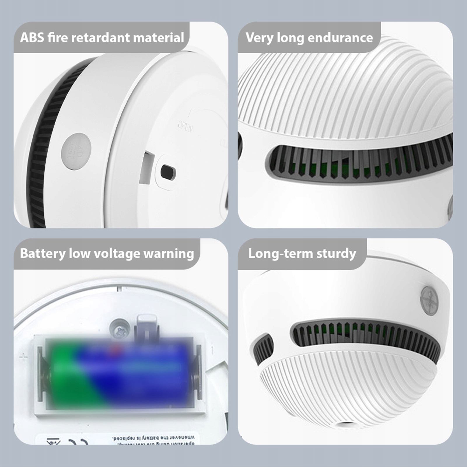 2. Довгий блок живлення: оснащений змінним акумулятором CR123a Li Lia потужністю 1500 мАг, наша димова сигналізація гарантує вражаючий резервний час, що триває протягом 10 років, забезпечуючи постійний захист без частих зміни акумулятора.