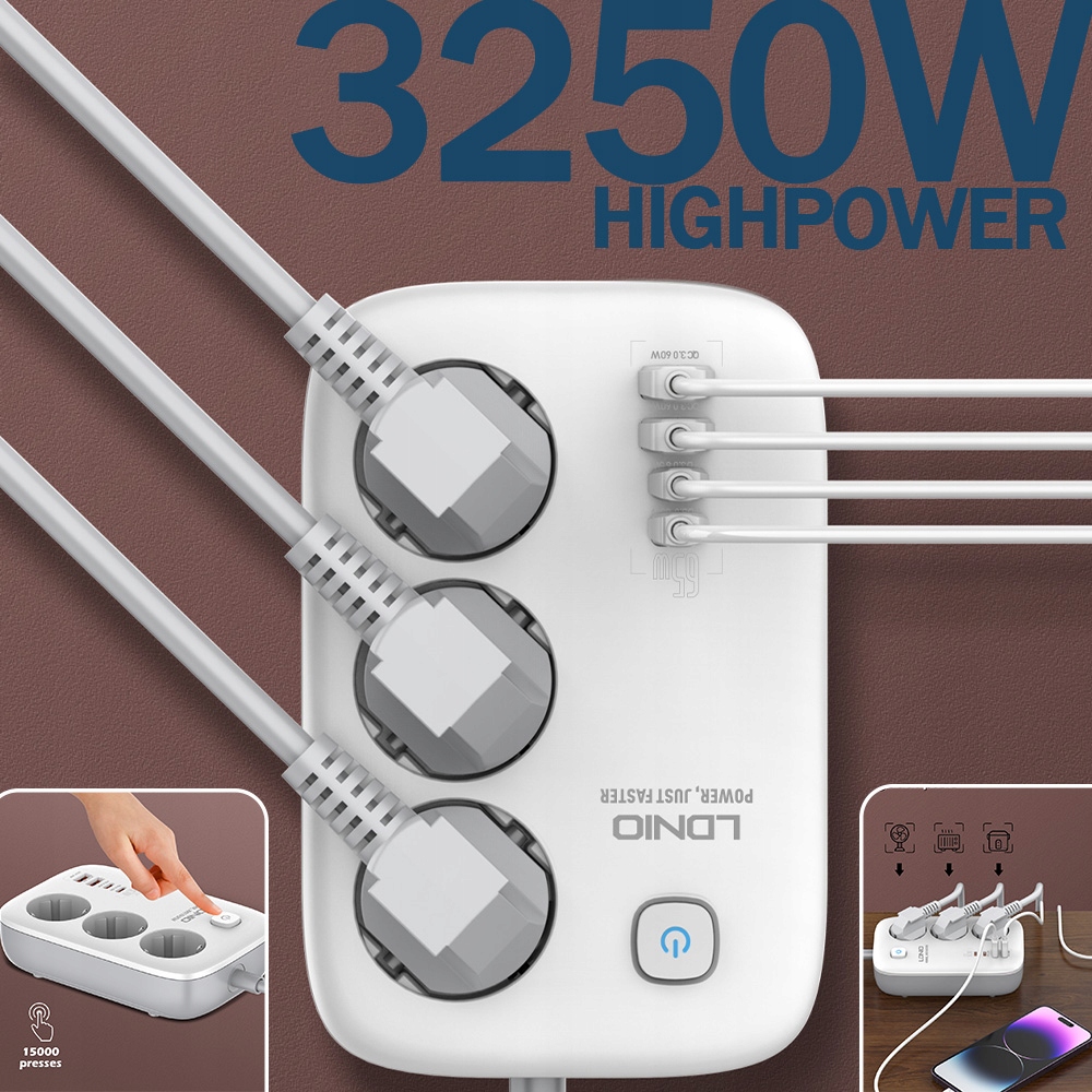 2 м потужності з 65 Вт зарядним пристроєм 3 розетки + 2 USB + 2 TYP-C