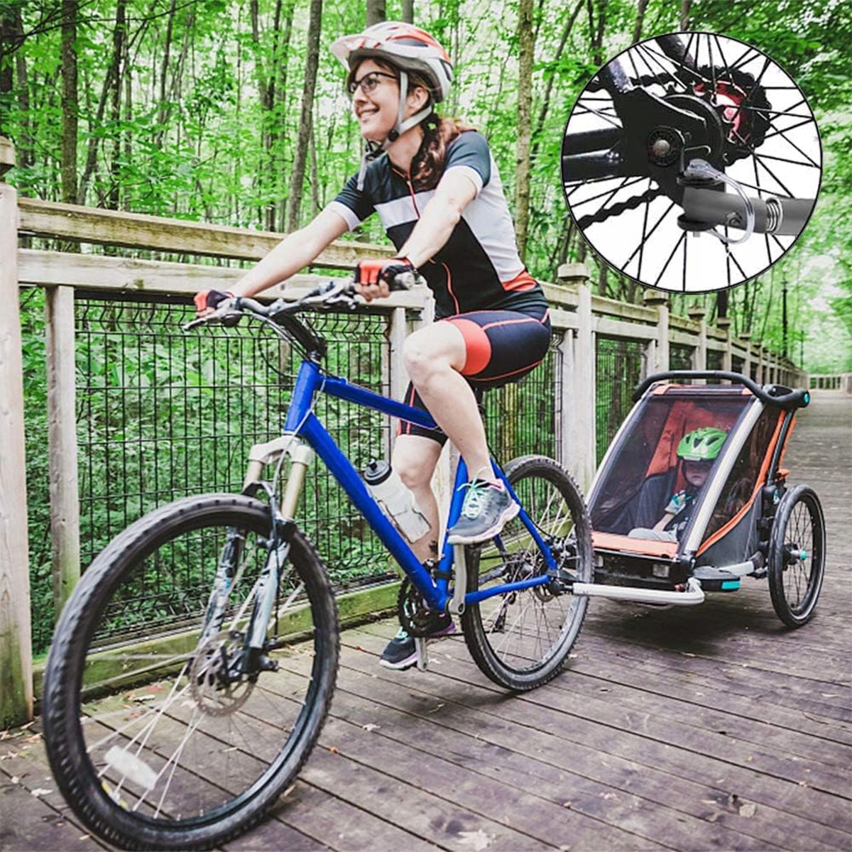 Легка збірка: спочатку прикріпіть буксир до велосипеда, а потім підключіть велосипед з причепом із сполучною шпилькою, і він готовий!