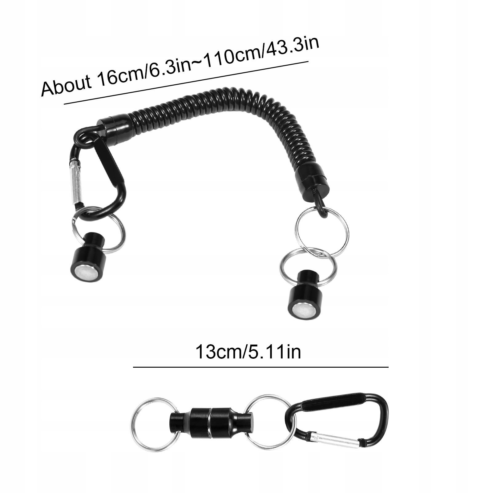 Згорнутий повідок простягається від 16 см (6,3 дюйма) до максимальної міцності 110 см (43,3 дюйма), тому не хвилюйтеся, що ви втратите мережу або риболовлю.