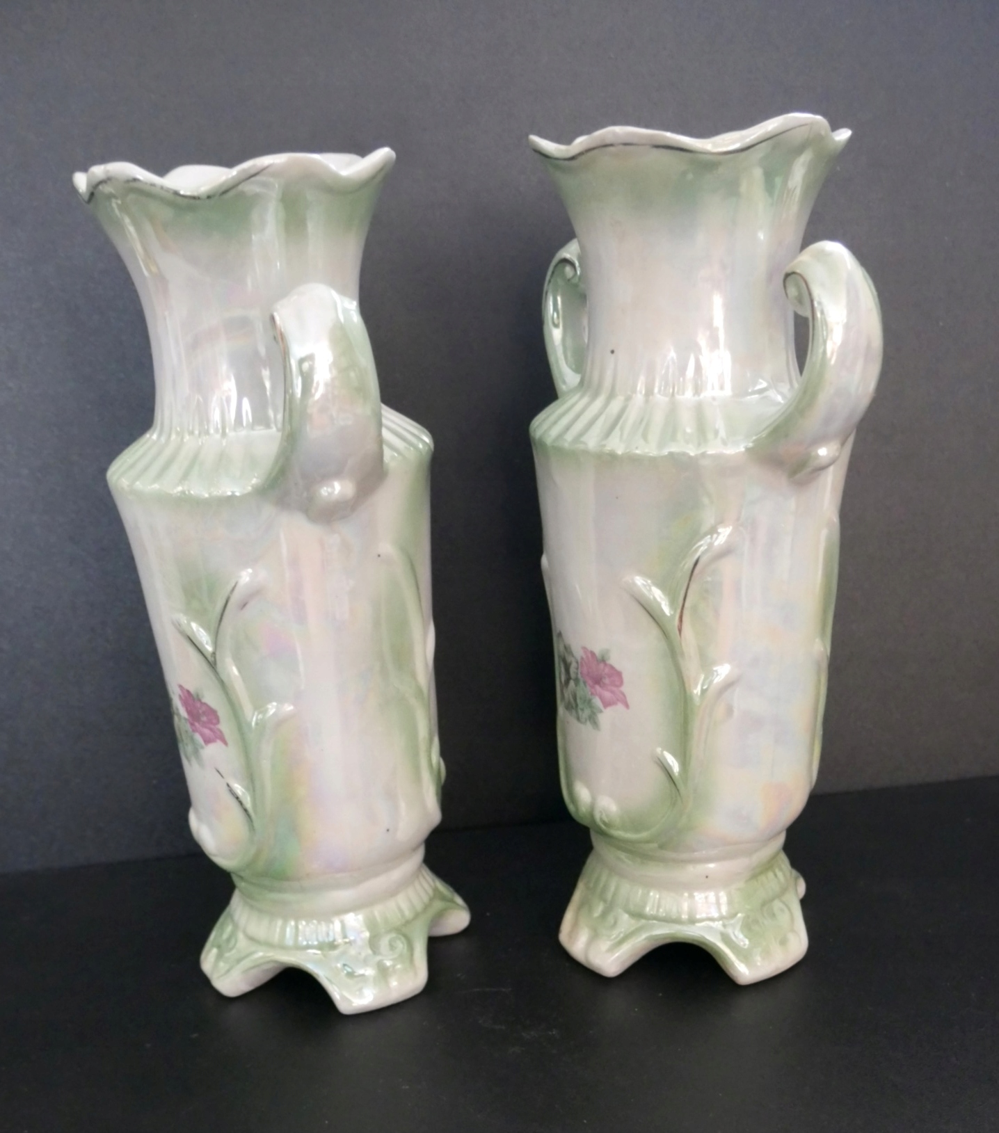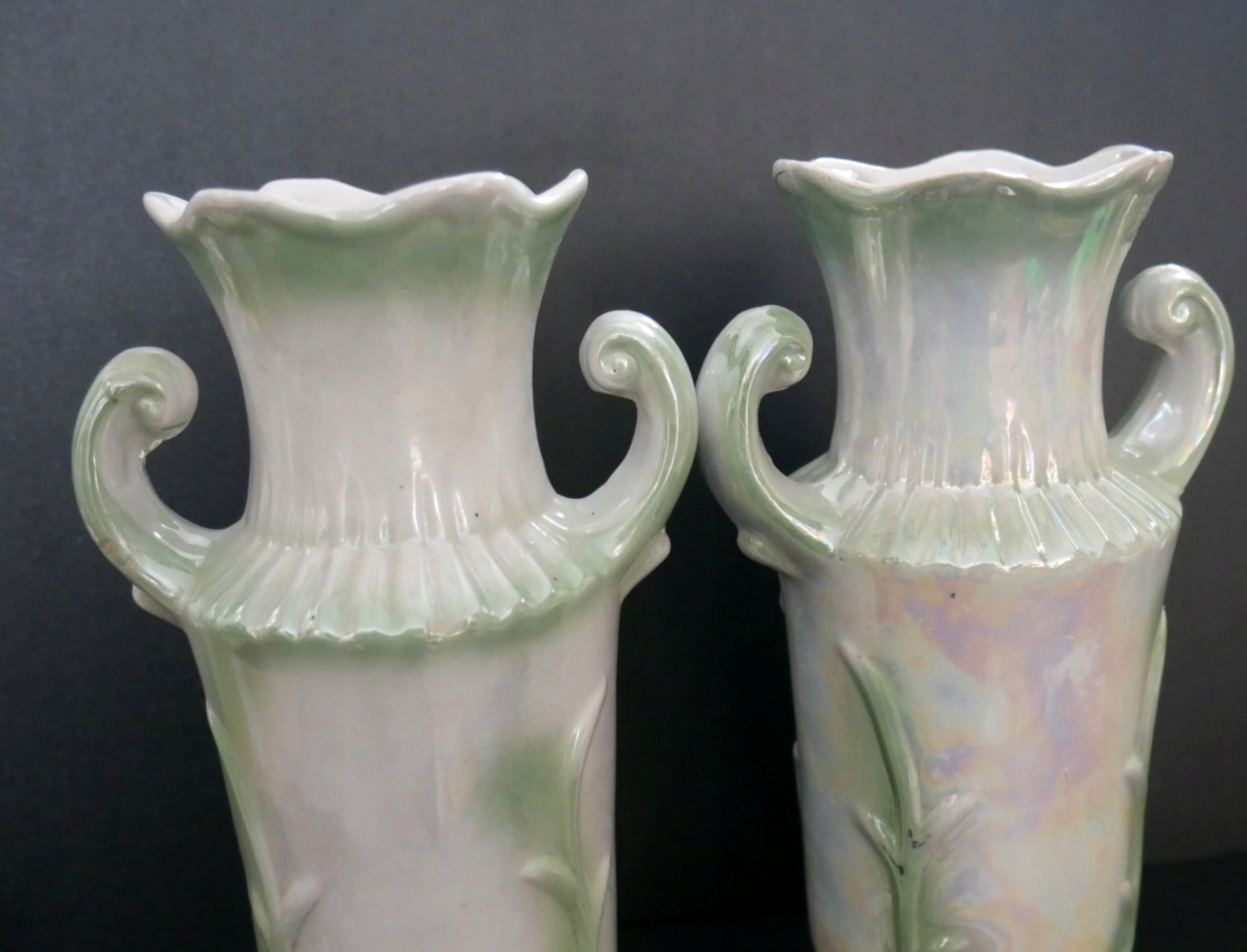 2 керамічні вази, райдужні, важкі для свого розміру, рельєфи