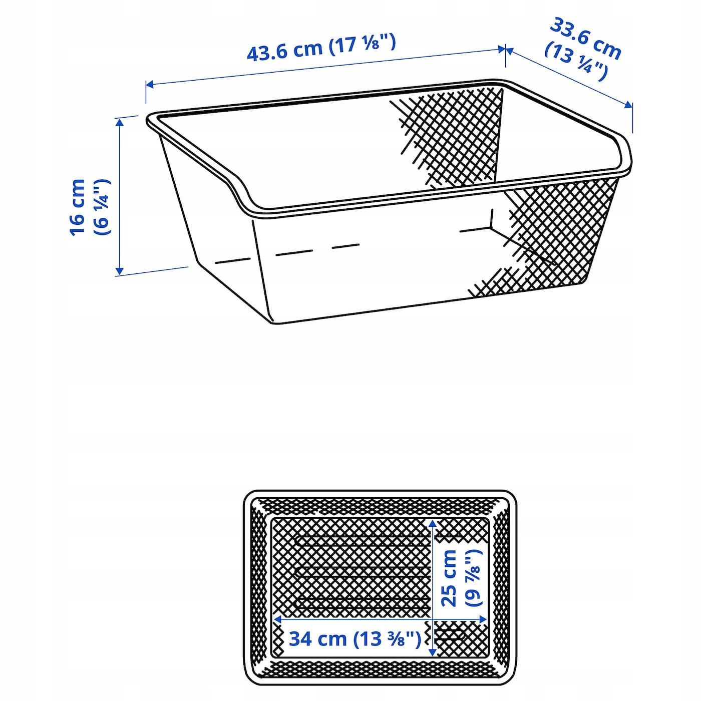 Дротяний кошик дозволяє швидко побачити, що всередині, і в той же час забезпечує циркуляцію повітря, завдяки чому одяг та інші тканини довше залишаються свіжими. На виріб поширюється 10-річна гарантія. Протріть тканиною, змоченою м’яким миючим засобом. Протріть чистою сухою тканиною.