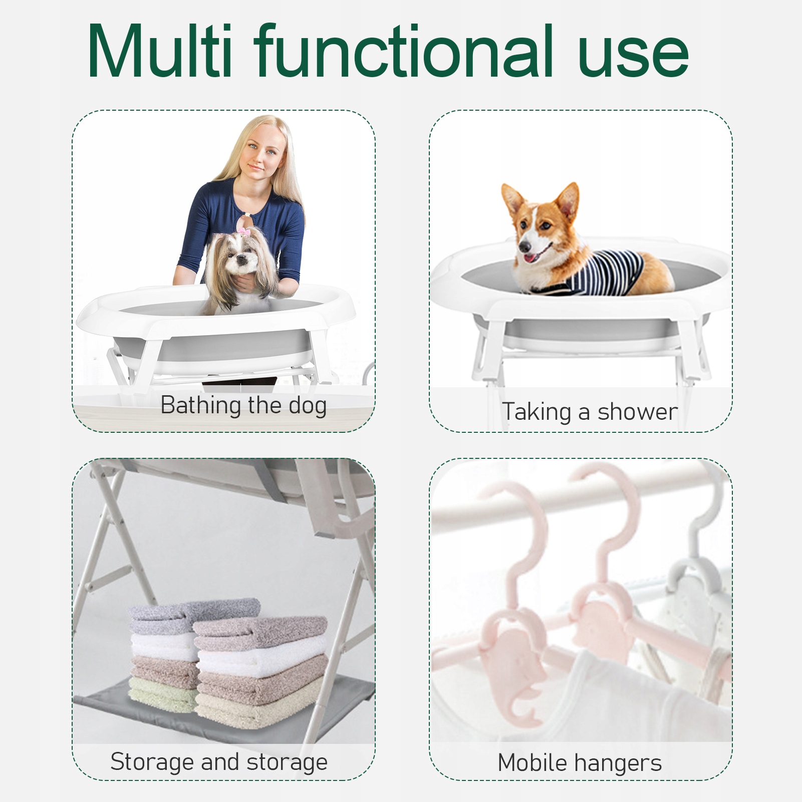 і підставка, і ванна можуть бути легко складені, що забезпечує зручне зберігання, що робить його ідеальним для подорожі, також для використання всередині та зовні.