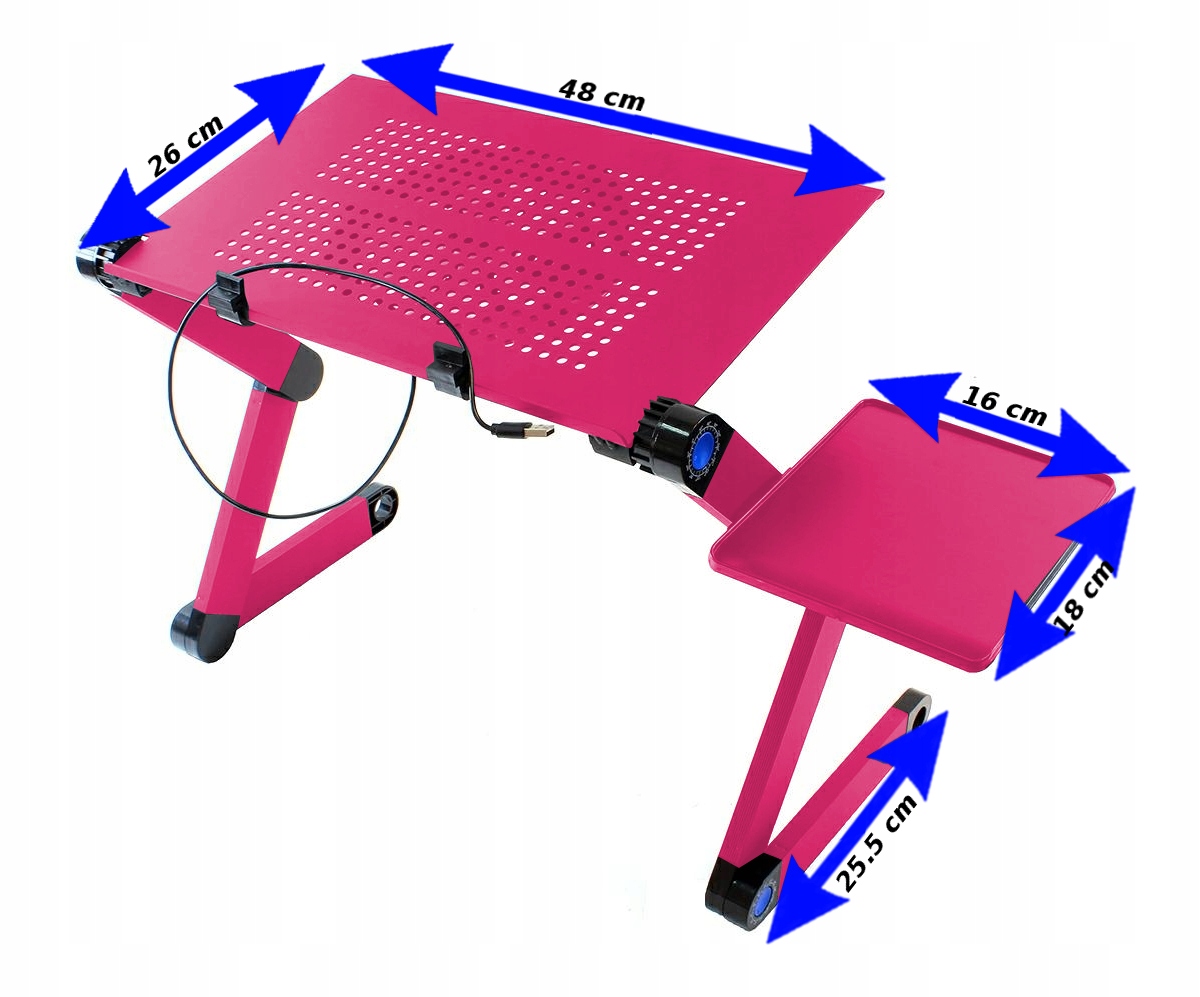 Функція охолодження забезпечується тихим вентилятором, що працює на порту USB. Таблиця оснащена додатковою полицею для миші. Це надзвичайно ергономічне рішення, яке збільшує комфорт використання ноутбука!