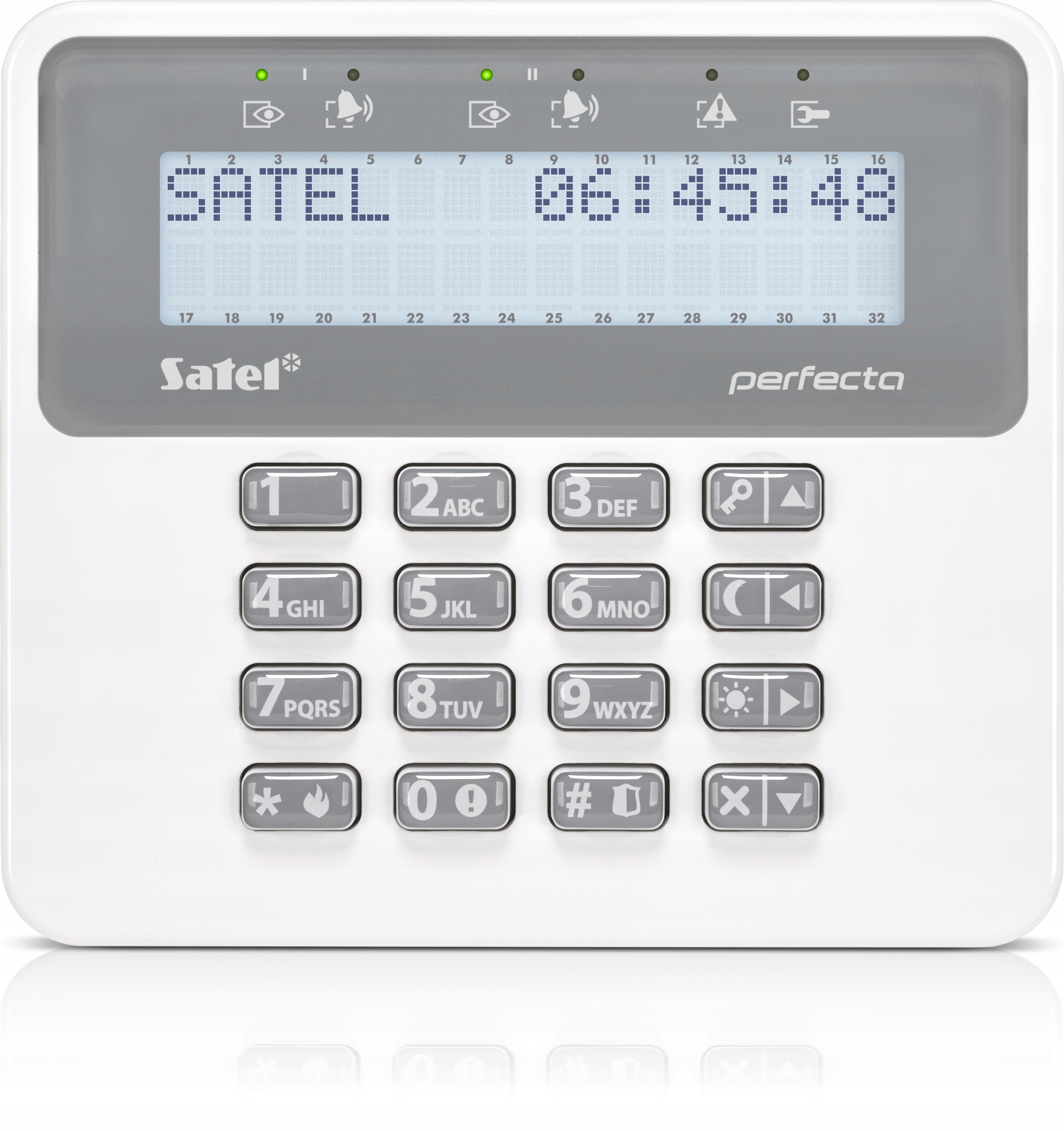 Клавіатура PRF-LCD-WRL призначена для роботи та програмування ППК серії PERFECTA. РК-дисплей, на якому відображаються текстові повідомлення, робить використання навіть розширених функцій ППК простим і зручним.