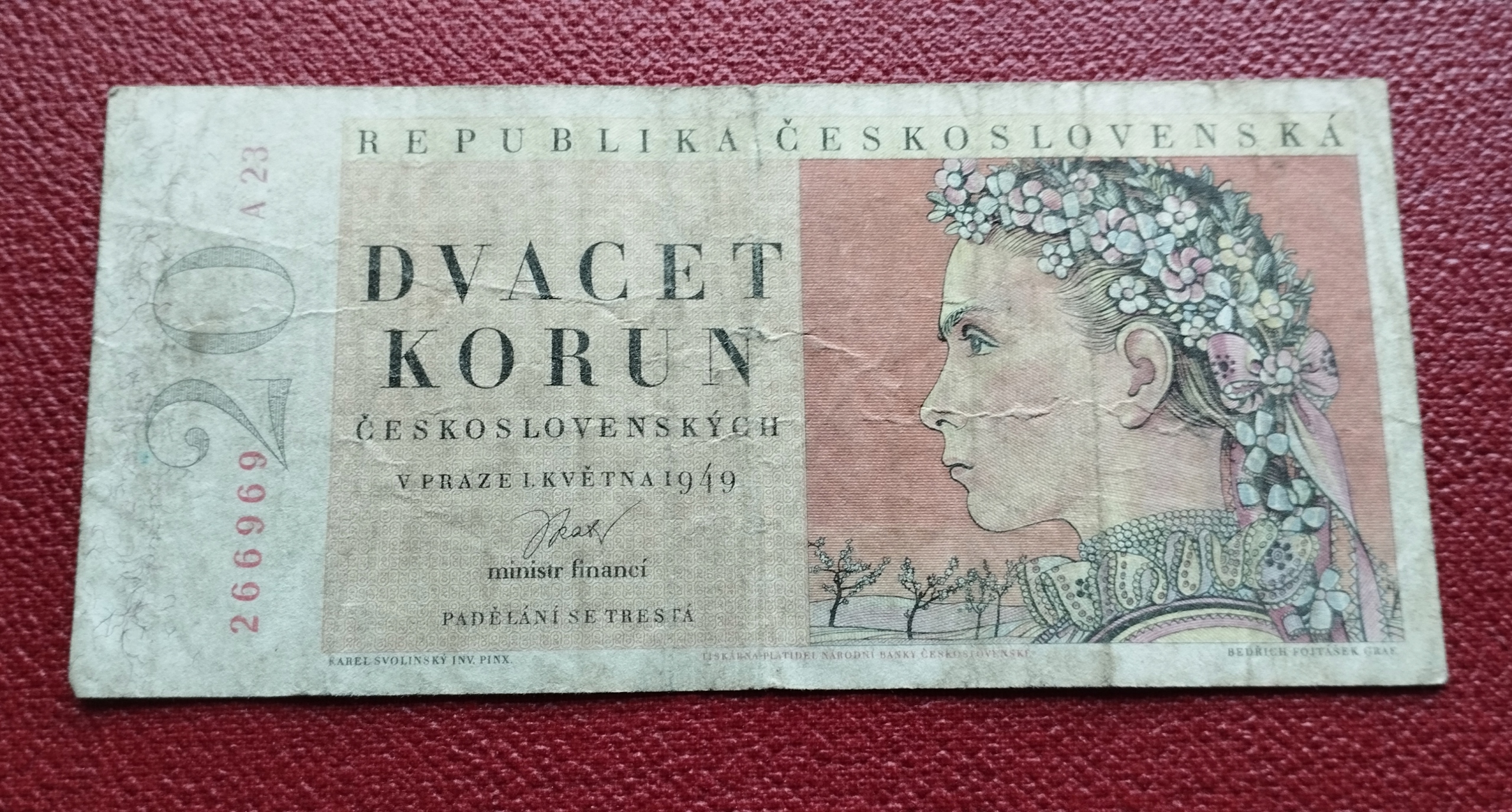 20 KORON CZECHOSŁOWACJA 1949 ser.A st.+4