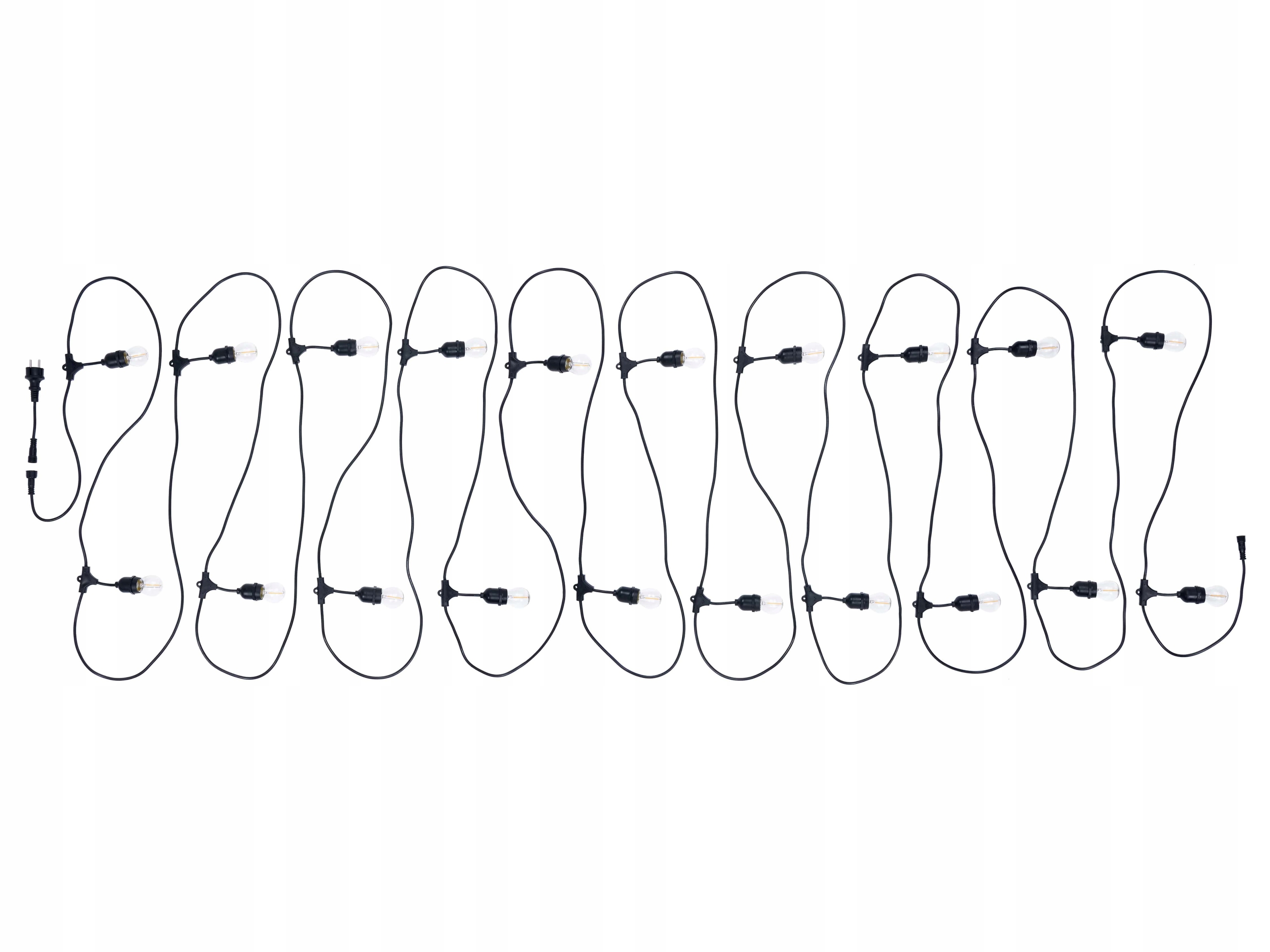 гірлянди з нашої пропозиції розташовані кожні 1 метр розетки E27. Вони характеризуються можливістю подовження ряду до максимальної потужності 2300 Вт, що спричиняє дуже великі можливості в розташуванні за допомогою продукту. Гірляни пристосовані до енергетичних лампочок у класах ++ - те, що збільшує можливості розташування за допомогою альтернативних джерел світла. Вони мають ступінь жорсткості IP44, тому ви можете бути впевнені, що продукт буде безпечно працювати над зміною зовнішніх умов.