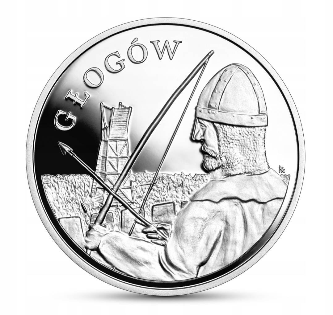 Реверс (реверс): праворуч зображення середньовічного лицаря в напів профіль, з луком і стрілою в руках, на фоні стилізованого оборонного укріплення Глогува та облогової вежі - йдеться про оборону Глогува у 1109 р. Вгорі ліворуч напис півколом: GŁOGÓW