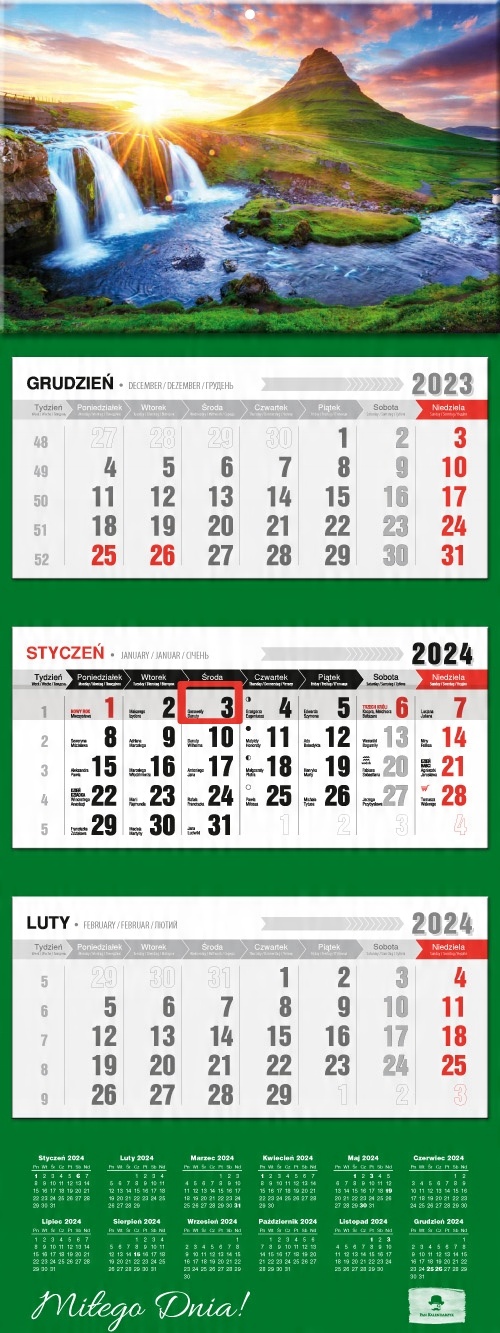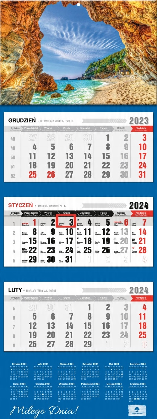 ТРИСТОРОННИЙ НАСТІННИЙ КАЛЕНДАР ПРЕМІУМ НА 2024 РІК З КОНВЕСТИРОВАННОЮ ЛАКУВАНОЮ ГОЛОВОЮ