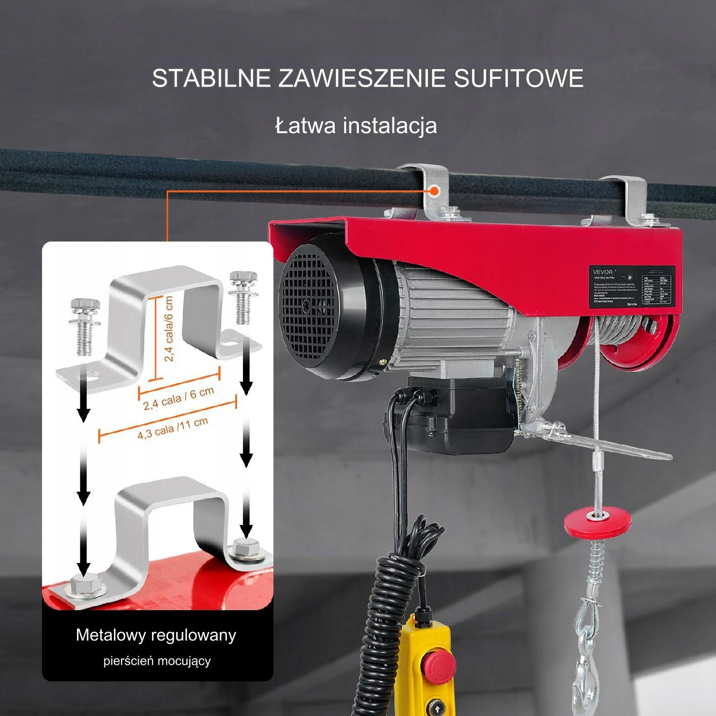 його можна безпосередньо вивіти на стелі металевими або твердими дерев’яними смужками. Крім того, він оснащений аварійним перемикачем зупинки та електромагнітною гальмівною системою для запобігання аномального ковзання.