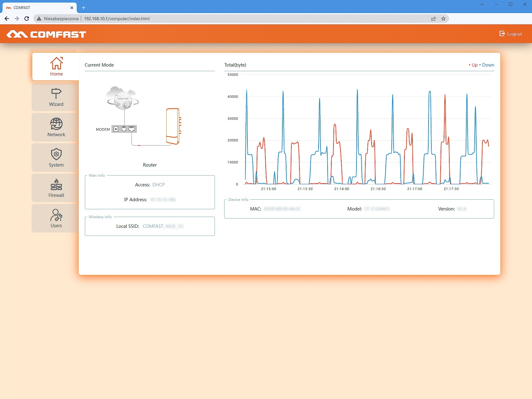 - Перевага cf-e314n v2 -це спрощена конфігурація, яка дозволяє спростити запуск мосту завдяки вбудованому майстра, що спрощує конфігурацію. Система, що складається з двох частин, може надсилати Інтернет з "кабелю" через Wi-Fi до іншого "кабелю"