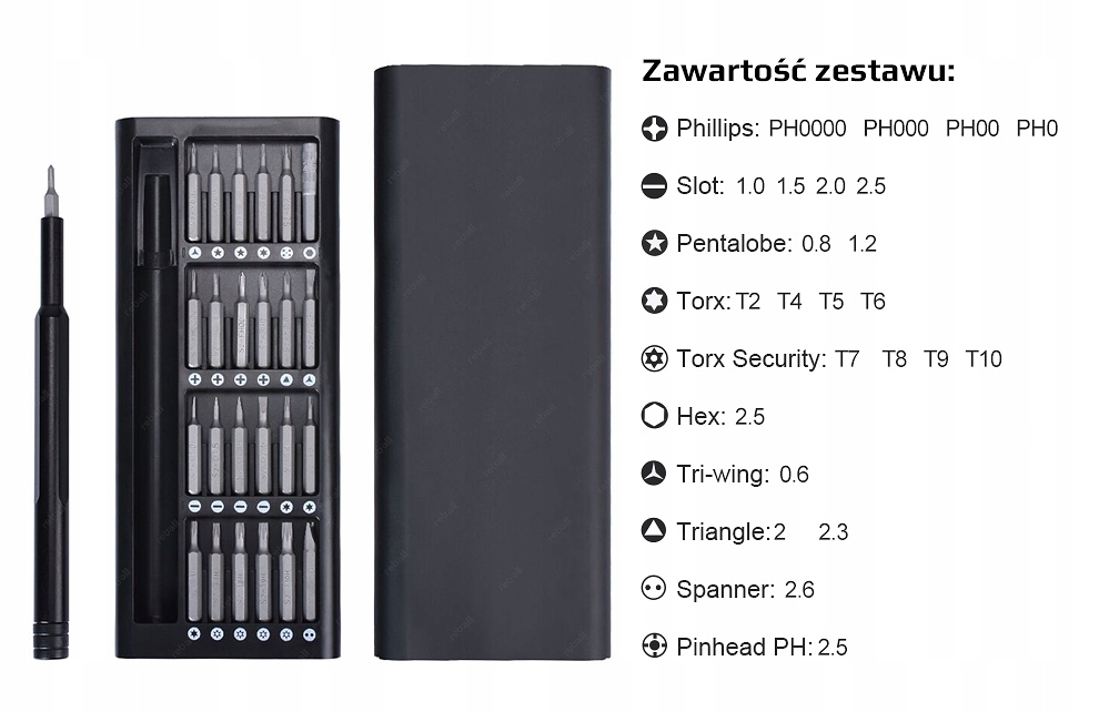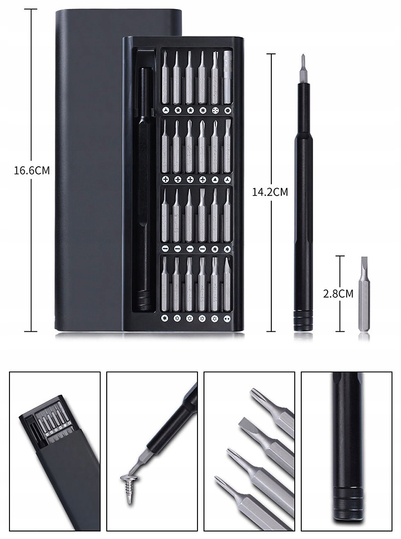 - 24 magnetic precise bits made of durable and solid steel s2 with additional anti -corrosion protection