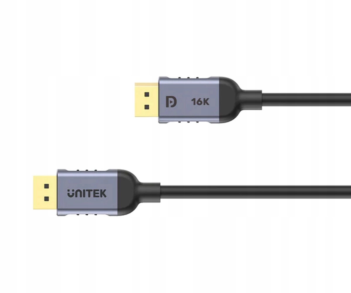 Displayport 2.1 16K Unitek відрізняється найвищою якістю виготовлення. Його обшивка була зроблена з подвійного капронового переплетення. Поради виготовлені з алюмінієвого сплаву, а їх пробки позолочені 24-каратним золотом. Завдяки своїй конструкції цей кабель не заплутається і в 10 разів міцніший, ніж кабелі з ПВХ.