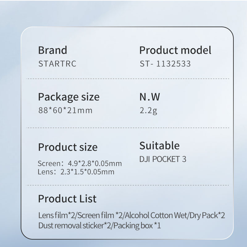 Що ви отримаєте - Захисну плівку для екрану + кришку для об'єктива + папір для чищення екрана + серветку для чищення аксесуарів DJI Pocket 3 (2 штуки). (Pocket 3 не входить)