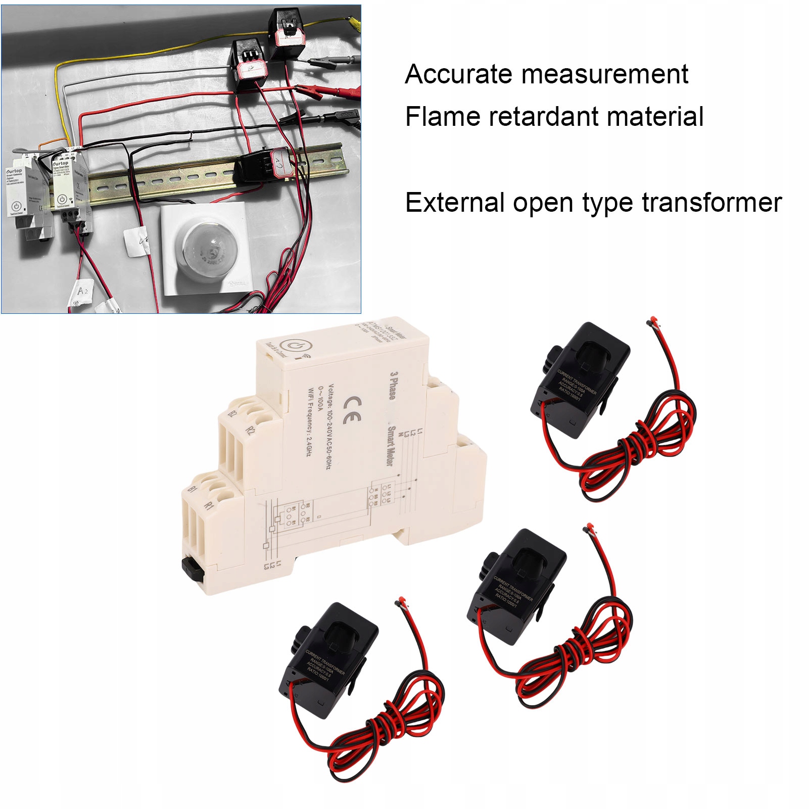 2. Проста установка: призначений для зручності, цей лічильник енергії встановлюється без проблем у більшості панелей домашніх схем, використовуючи датчики. Підтримує однофазні та трифазні системи, враховуючи широкий діапазон напруг.
