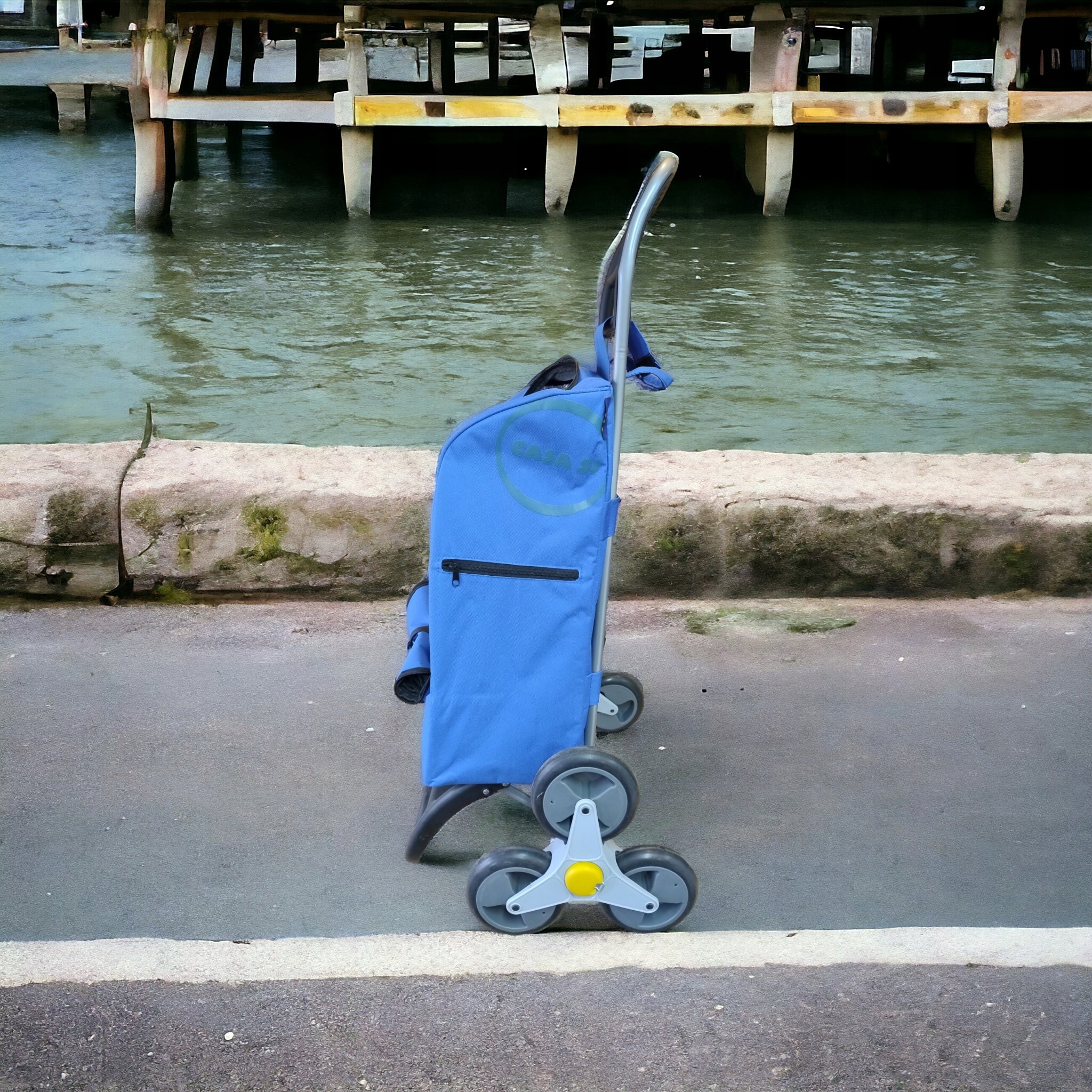 Легкий візок Buddy з ергономічною ручкою та системою ТРЬОХ КОЛІС від CasaSi стане в пригоді під час транспортування покупок чи іншого багажу. Ця модель має три колеса діаметром 15 см з легкою пінопластовою шиною і пластиковим ободом, а також складну опору. Завдяки такому рішенню вона ідеально адаптується до поверхні, на якій знаходиться верхова їзда. Його можна без особливих зусиль витягнути вгору по сходах або на високий бордюр. На нього можна вантажити великі та важкі покупки, не турбуючись про біль у руках та хребті, адже його об’єм становить 40 літрів, а максимальне навантаження – 30 кг. Сумка виготовлена з водонепроникного матеріалу, тому ваші покупки залишаться сухими, наприклад під час дощу. Крім того, внутрішня частина сумки має термоізоляцію, що зберігає низьку температуру всередині протягом тривалого часу. Коли сумка забрудниться, її можна випрати в пральній машині. Передня частина сумки розстібається, забезпечуючи легкий доступ до покупок у самому дні. Коляска також має невеликі бічні кишені на блискавці. Хочеться відзначити, що візки поступово стають улюбленим гаджетом молоді. Особливо тому, що стиль італійського виробника дуже універсальний