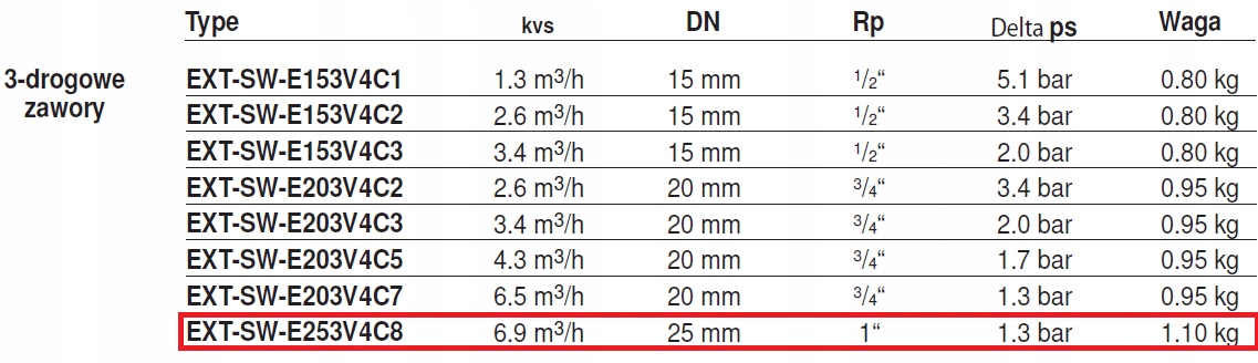Зверніть увагу, що з’єднання клапана мають діаметр 1' (DN25), при цьому внутрішній прохід звужений приблизно до 1 см, що дозволяє підтримувати виділений номінальний потік kvs на рівні 6,9 м³/год. Таке звуження є характерною особливістю цього типу клапанів.