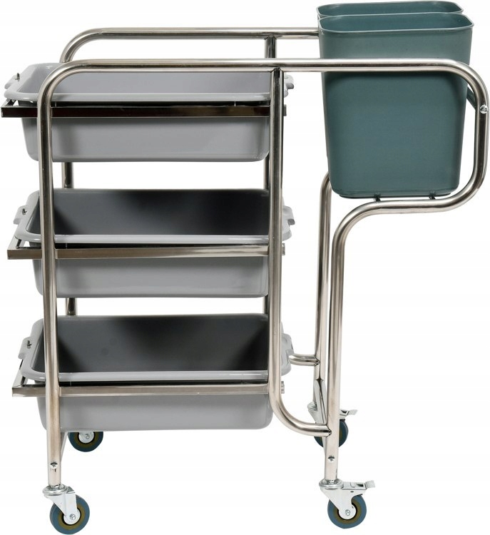 виготовлений з круглих якості профілів, що є корозійними, стійкими, простими в очищенні та підтримувати чисті. Візок має три полиці для великих контейнерів та додаткову полицю для двох кошиків. Відстань між поличками для великих контейнерів виглядає 240 мм . Вони мають додаткові fling , що запобігає переміщенням контейнерів і захищає їх від випадання.