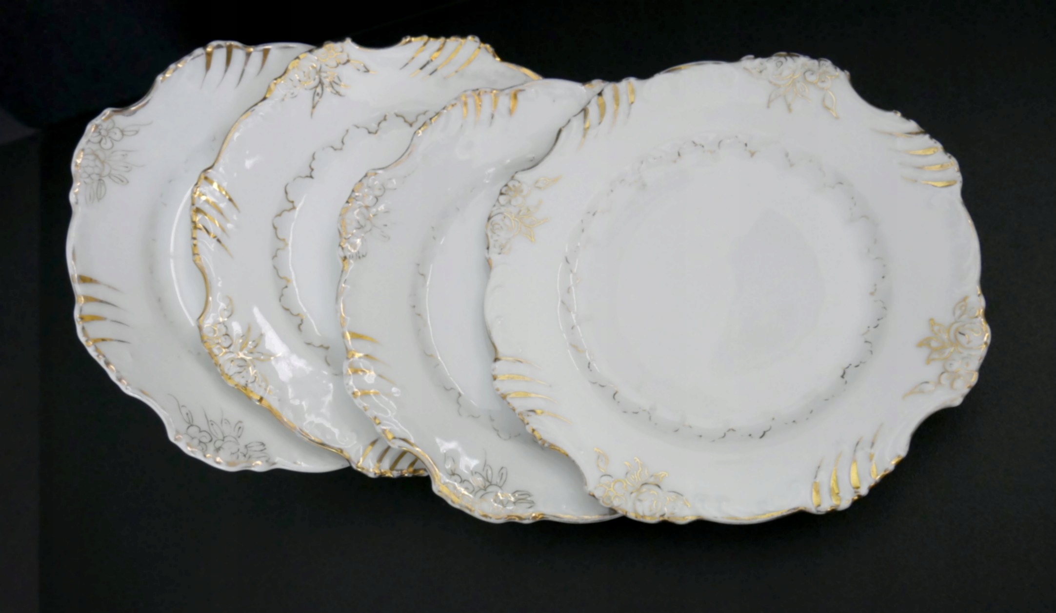 3 десертні тарілки + 1 (тріщина на дні, 3-полюсне волосся, ззовні, не видно, підпис Оме Щавенко 1920-1930 рр.