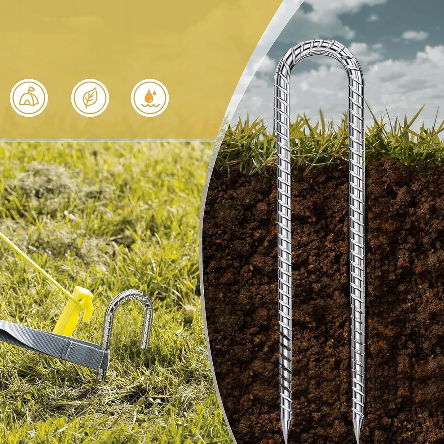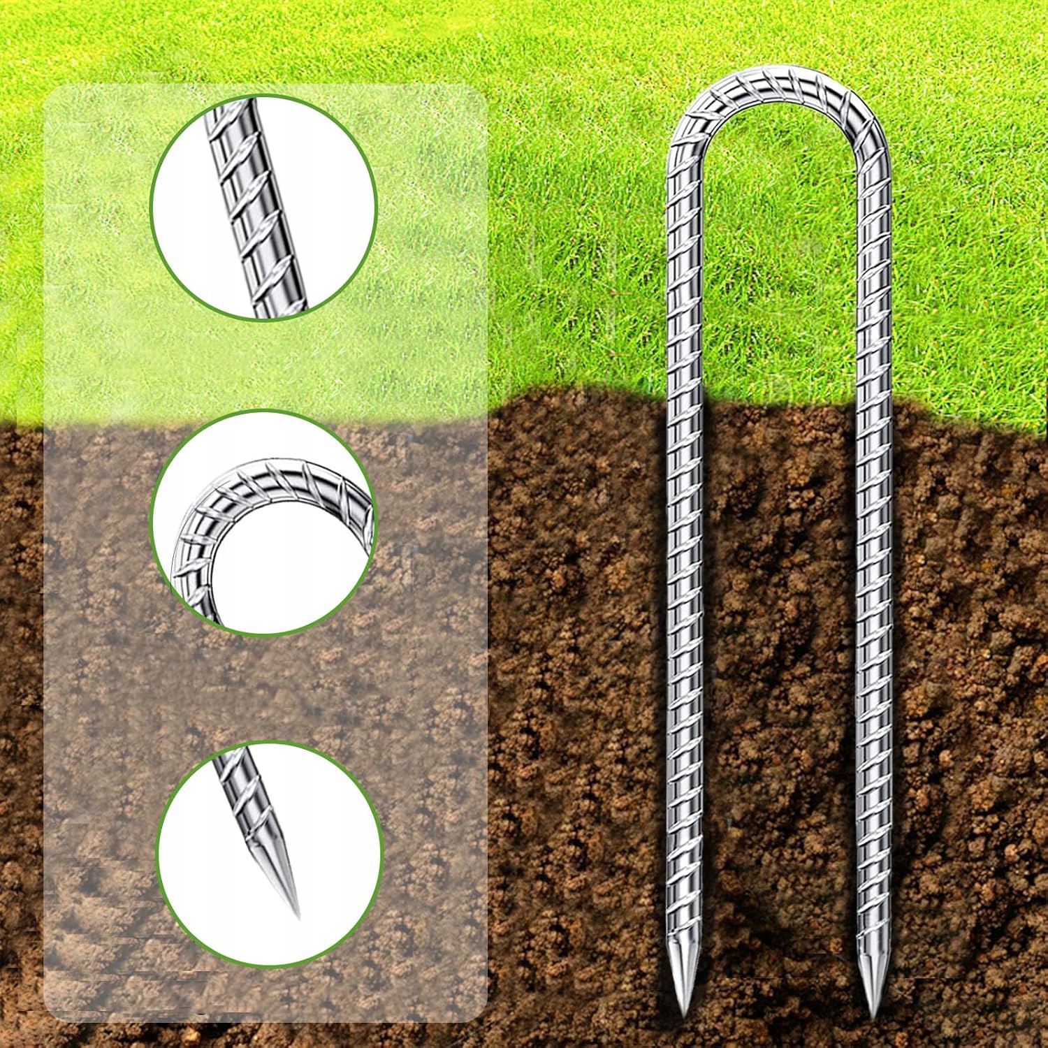➡ Садова оселедець наконечники. Ніяких допоміжних інструментів не потрібні. Кінцева структура означає, що прив’язки легко кладуть у землю. Ви можете довго використовувати цей ґрунтовий якір.