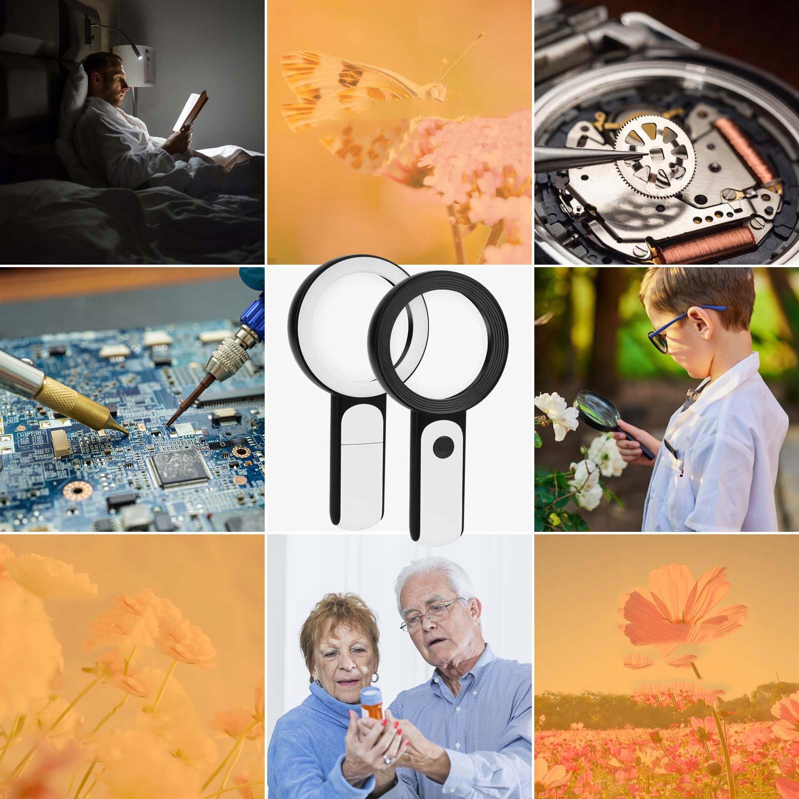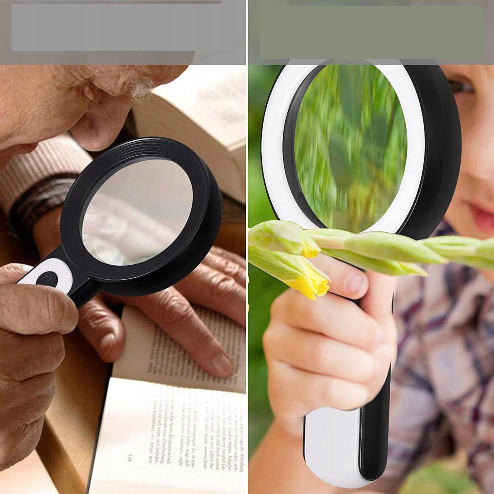 Великий лупа для людей похилого віку, у більшості людей похилого віку важко прочитати невеликий друк на купонах, рецептах та медичній пляшці. Прозорий лупа зі світлом також є чудовим вибором для тих, хто має низький або порушений зір більшості типів.