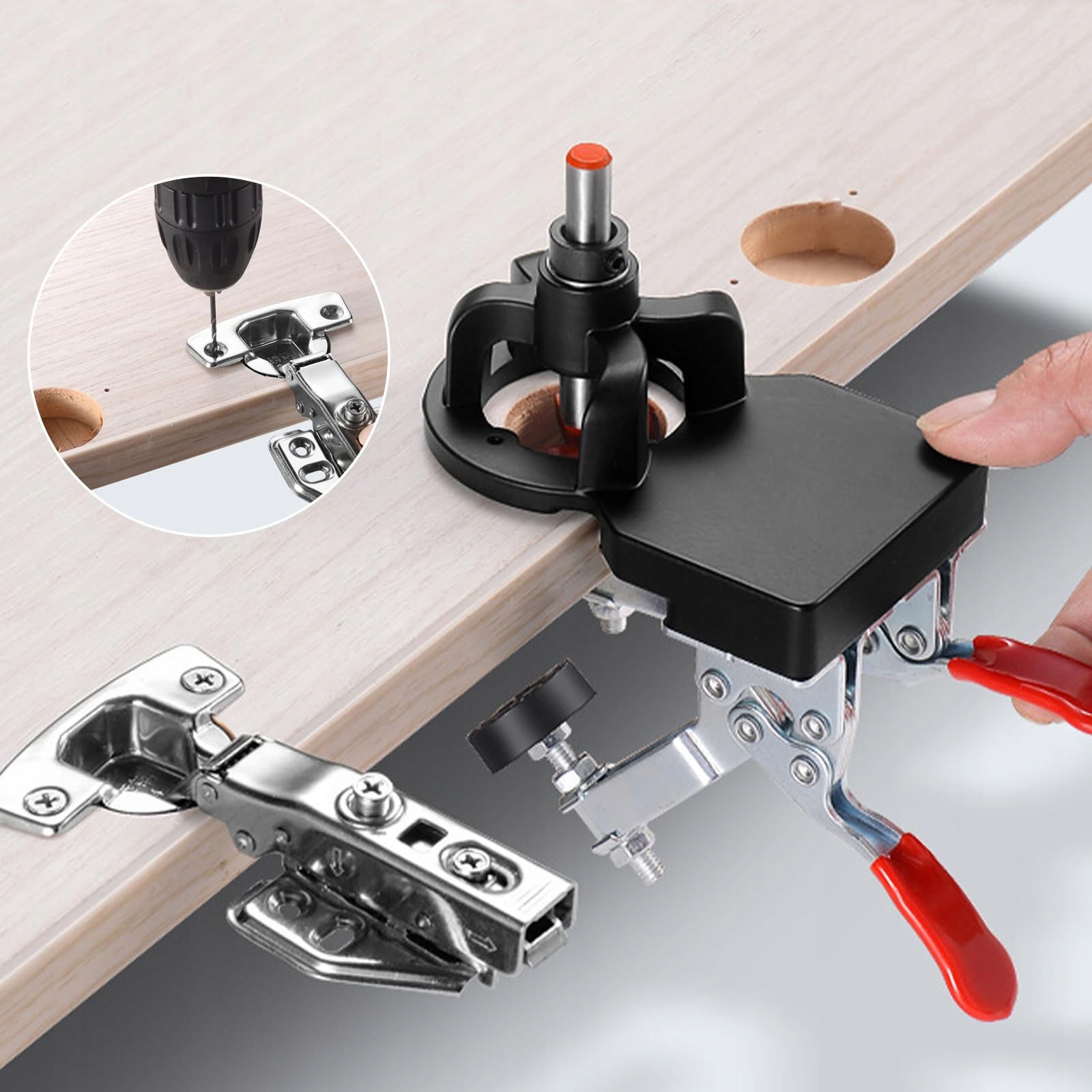 підходить для панелі товщиною 15-25 мм, конструкція з подвійним затискачем, з головкою гумового тиску, не пошкодить поверхню лаку. Поля отвору регулюються в діапазоні 4-6 мм для задоволення різних потреб буріння.