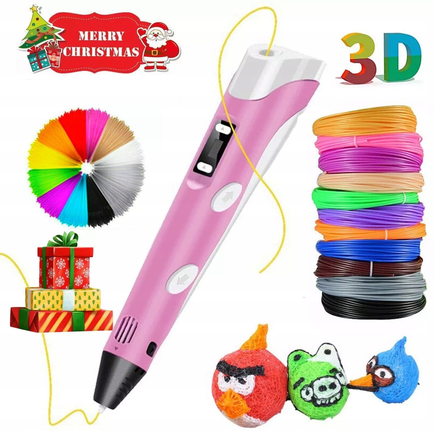 3D 3D ручка для дітей, 3D -принтер рожевий + 20 кольорів 110 м вставки