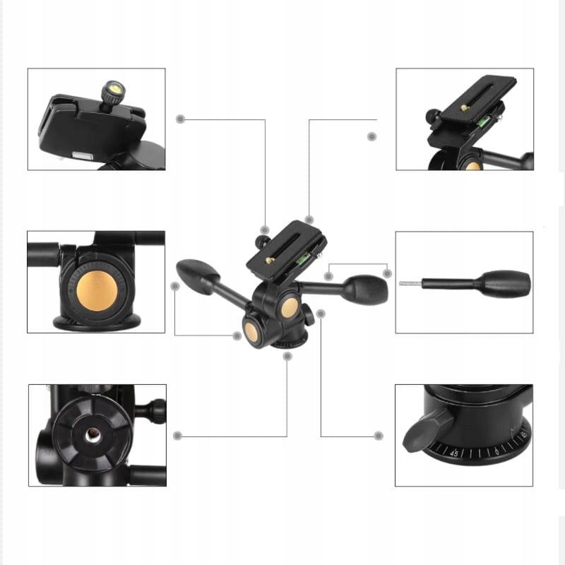 mitoya mty80 - це штативна головка 3d , оснащена двома відкрученими контрольними ручками, , що дозволяє точно керувати кадром. Присвячений фотографічним штативам та повзункам з ниткою 3/8 дюйма . Це буде ідеально під час роботи з розширеними камерами, телефото -лінзами та відеокамерами. Виготовлений з міцного алюмінієвого сплаву та пластику, дозволяє встановити обладнання вагою до 8 кг . 4 Зміна налаштувань та досягнення бажаних результатів сприятиме двом малим рівні та кутовою шкалою в основі . Зміна положення регулюється на трьох рівнях: голову можна обернути навколо власної осі, нахиляючись вперед і назад і нахилений набік. Кожна позиція блокується незалежно. Все це означає, що MTY80 - це продукт, який відповідає вимогам як ландшафтних фотографів, так і репортерів чи творців відео.