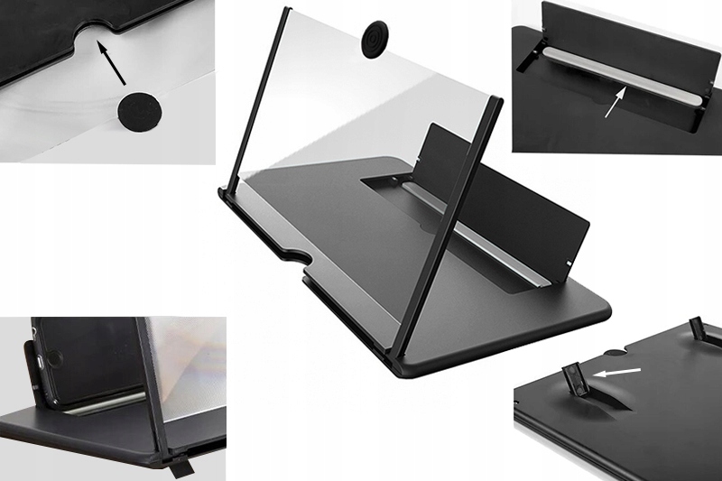 ✅ Вбудована підставка для телефону дозволяє дивитися збільшені відео без використання рук. Екран працює без програм, кабелів, батарей або джерела живлення.