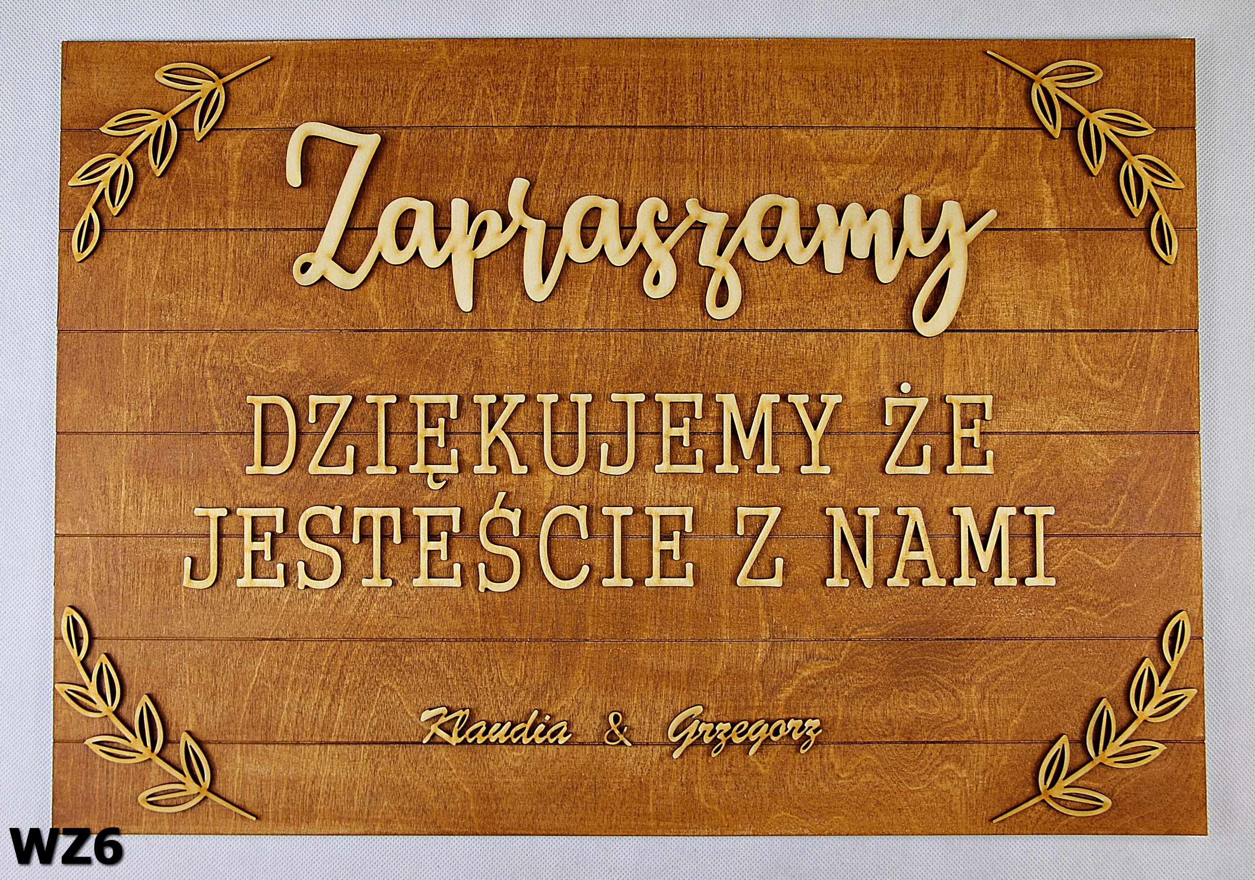 Дерев'яна персоналізована 3D табличка з привітанням - "Дякуємо, що ви з нами" в 7 візерунках на вибір.