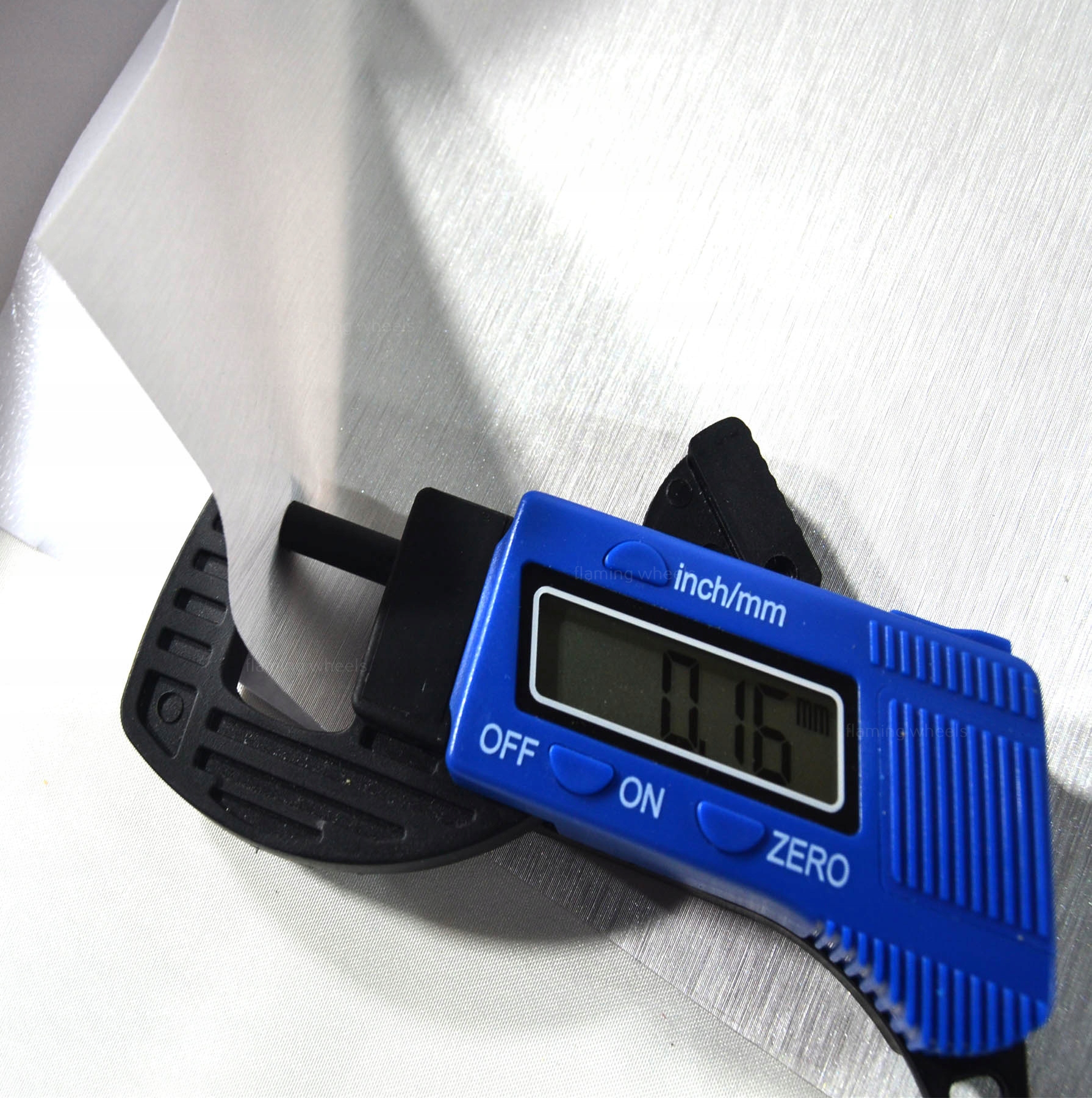 Наша фольга має товщину 160 мікрон 0,16 мм, що ви можете перевірити самі, бажано за допомогою мікрометра або, можливо, штангенциркуль. Він справді термопластичний, і при нагріванні він ідеально адаптується до елементів. Фольга стійка до дощу та морозу, міцна, з хорошим клеєм, не допускає помилок, виглядає як справжній шліфований алюміній.
