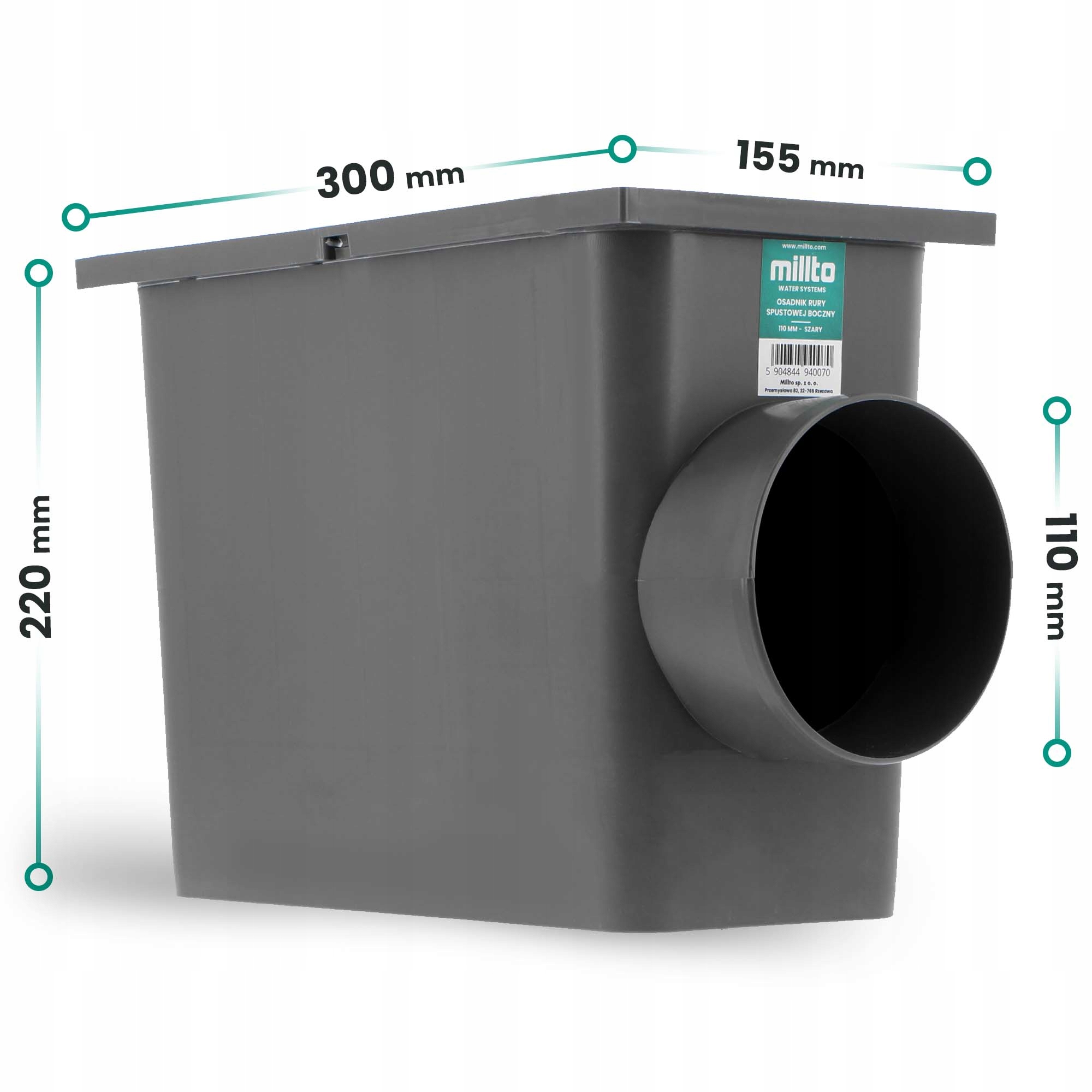 Очисник можна використовувати в багатьох водостічних системах. Вхідний отвір регулюється за розміром від 50 до 110 мм, що робить елемент універсальним. Тому вам не доведеться шукати відстійник, розроблений спеціально для діаметра водостоку, який використовується у вашому домі - наш продукт завжди буде ідеальним!