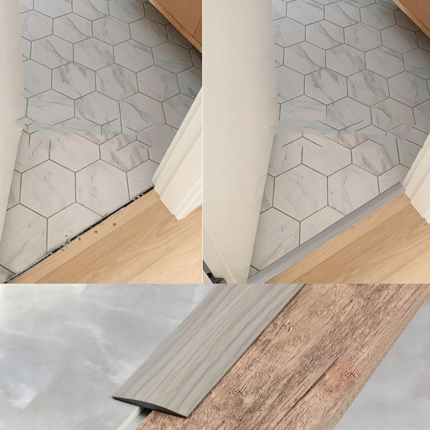 смужки перехідних дверей мають самостійну функцію, їх можна швидко склеювати шляхом від'єднання захисної плівки, не потребує складних інструментів, не потребує буріння, а підлога не пошкоджена. На відміну від алюмінієвих смуг підлоги, його можна легко вирізати до будь -якого розміру, залежно від ваших потреб.