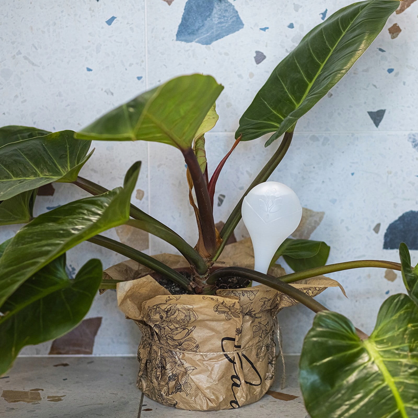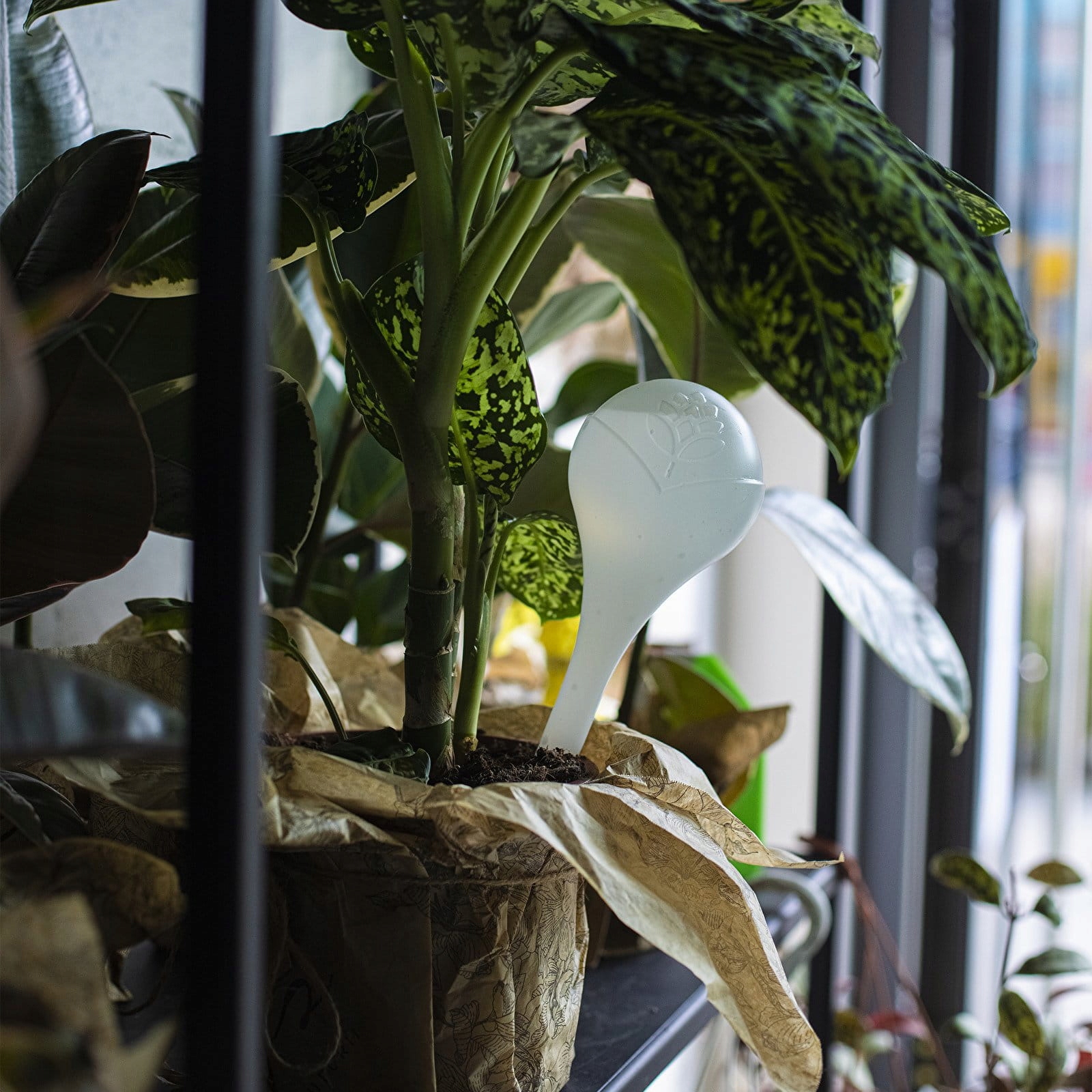 Великі кульки для поливу рослин, білі напівпрозорі, ємність 400 мл. Ці незламні кулі — чудовий і практичний спосіб поливати квіти та рослини в горщиках. Вони також ідеальні, коли домочадці відсутні, і для людей, які не завжди пам’ятають регулярно поливати свої рослини.