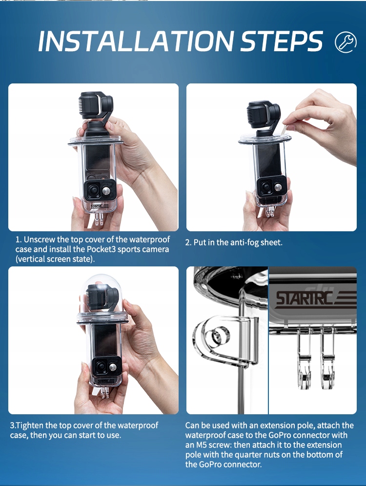 【, призначений для DJI Osmo Pocket 3】 Це дайвінг -корпус створений спеціально для DJI Osmo Pocket 3 і ідеально підходить для любителів підводних спорту, включаючи серферів, водолазів та авантюристів, які шукають водну тягу емоцій.