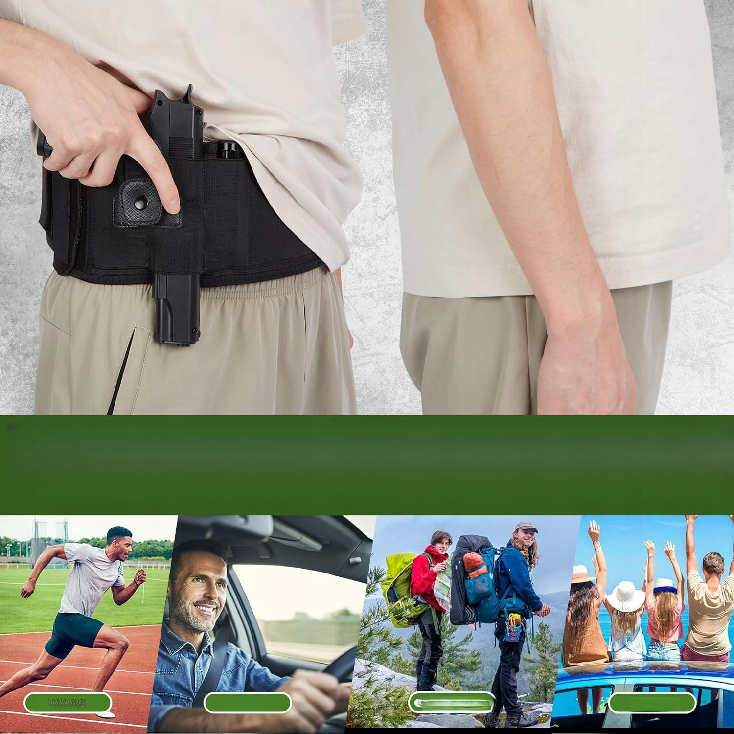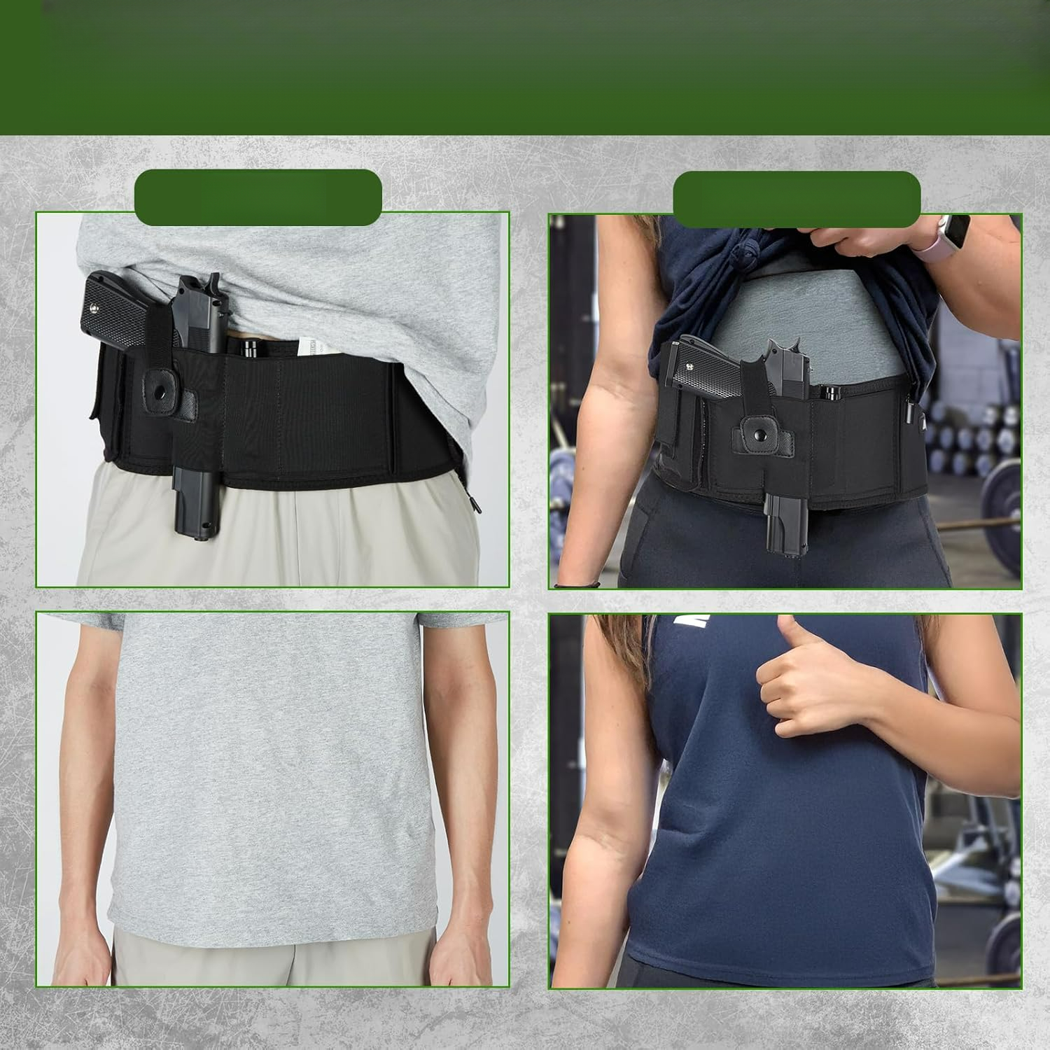 - Прихований ремінь для перенесення талії призначений для встановлення всіх компактних, середніх та повнорозмірних пістолетів та револьверів.