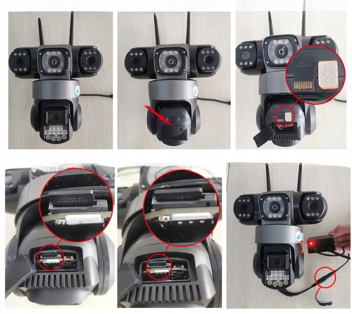 4G SIM -камера Зовнішня потрійна потрійна 3x4mp сигналізація тривоги IP Smart