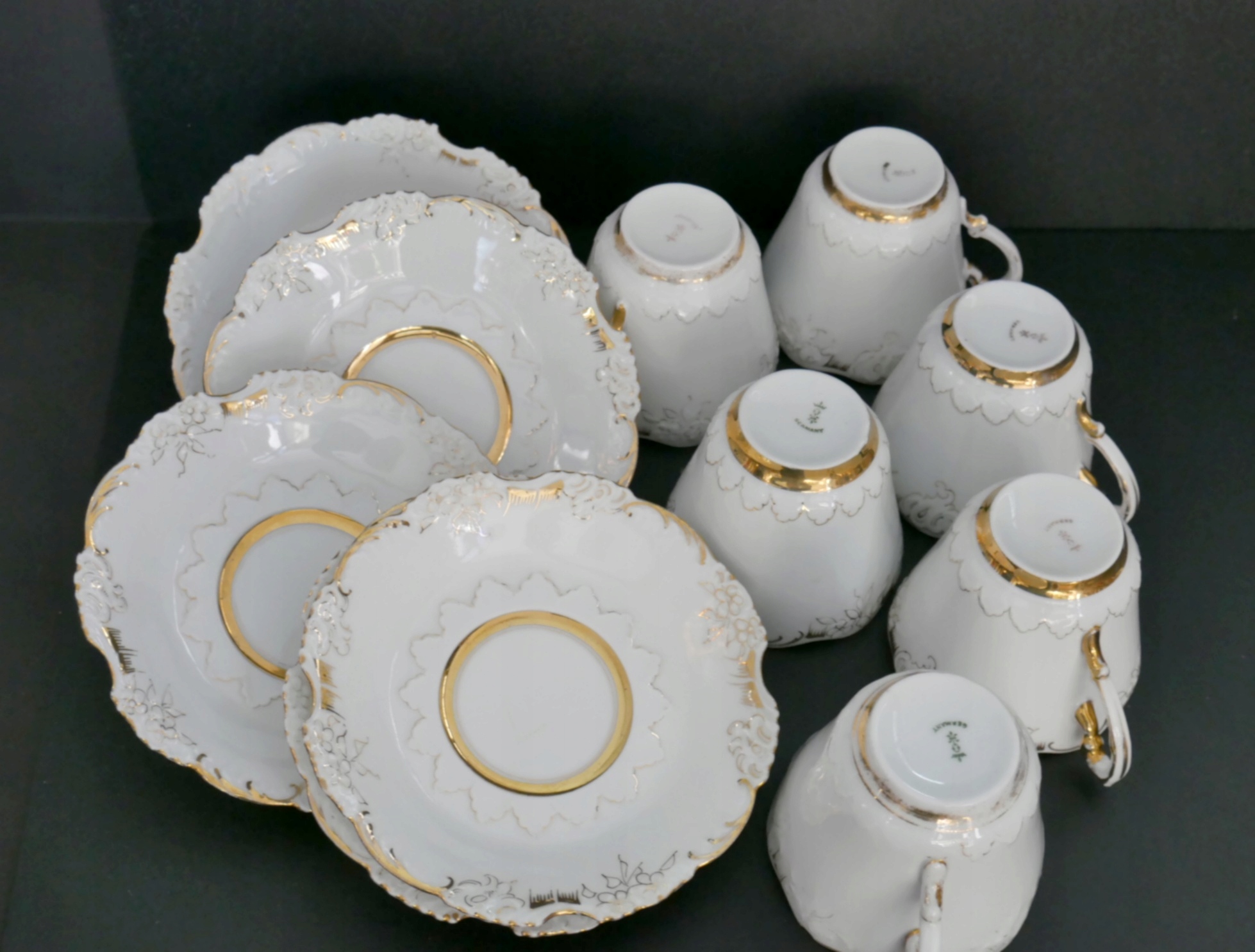 білий, світлий, прозорий фарфор, рельєфи підсвічується позолотою