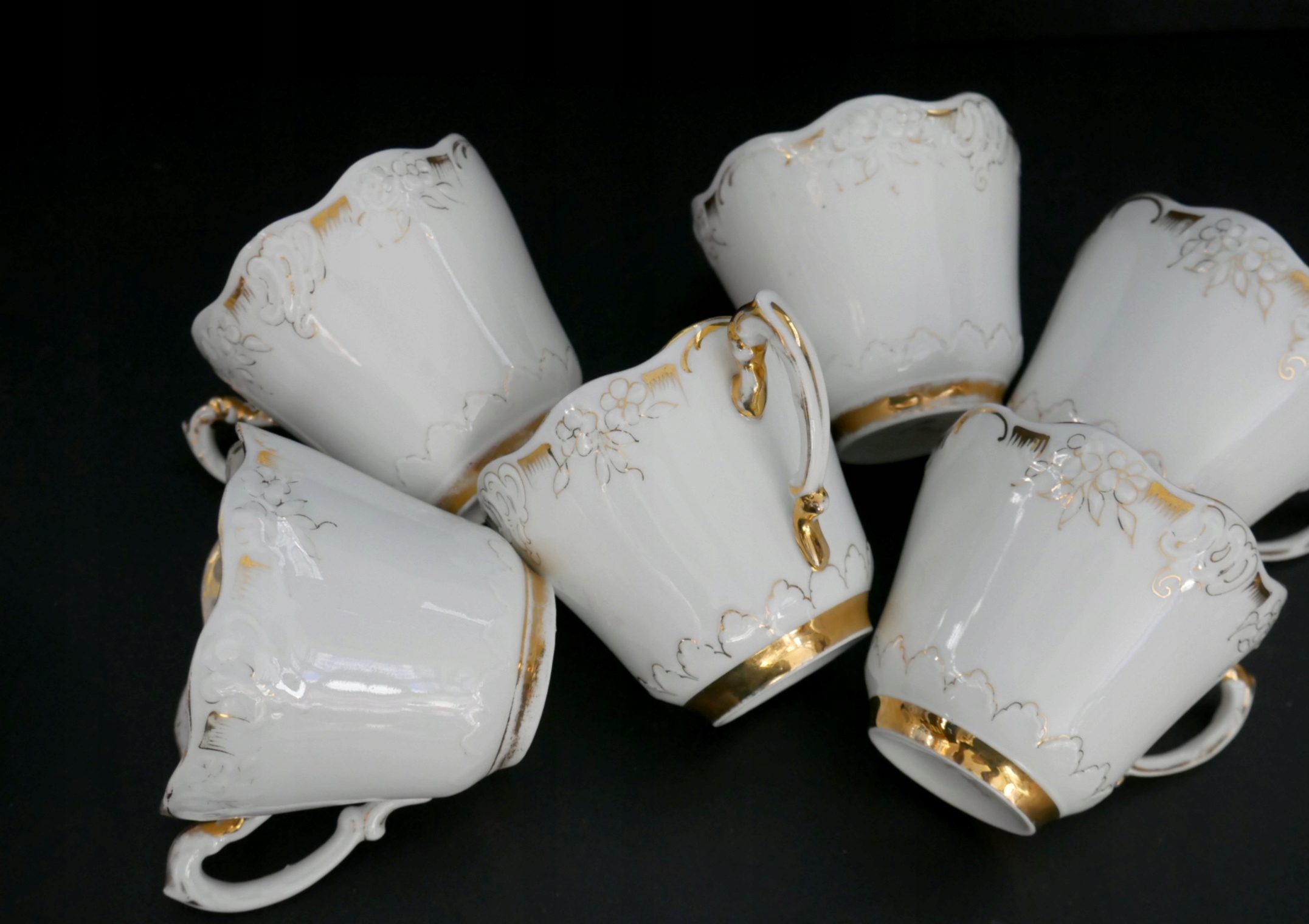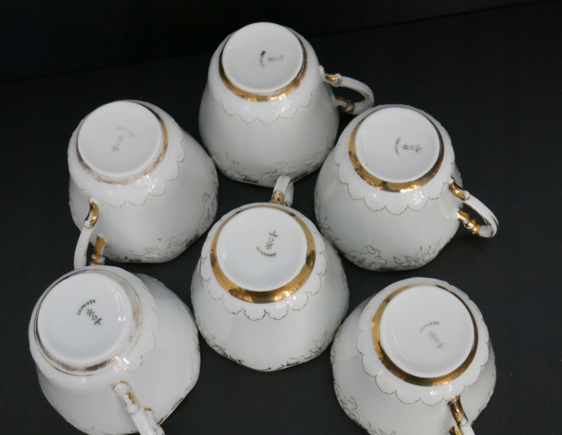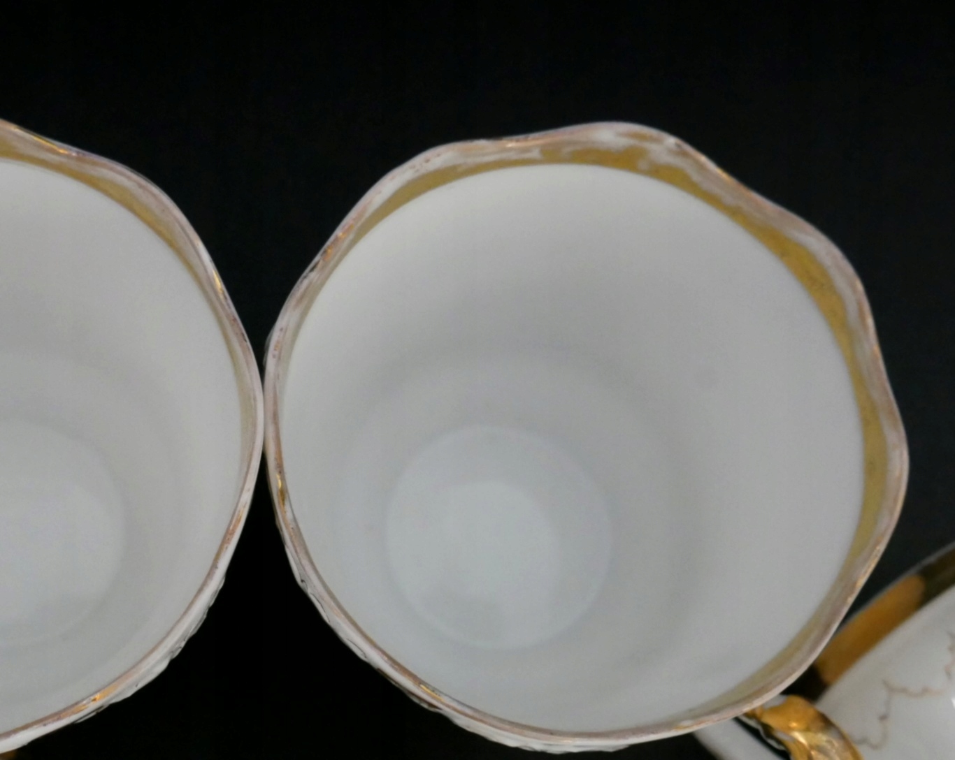 чашки поодинокі, мінімальні пошкодження по обідку 1-2 мм, деякі майже непомітні, 1 чашка - значні потертості до позолоти, 1 додаткова з дефектом, основи без видимих пошкоджень, 1 мінімальний скол збоку основи.