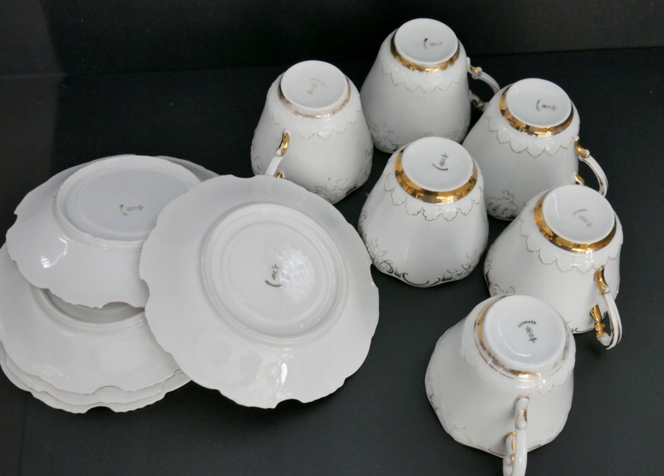 5 старих ніжних чашок з блюдцями Оме, Щавенко, підписи різних періодів