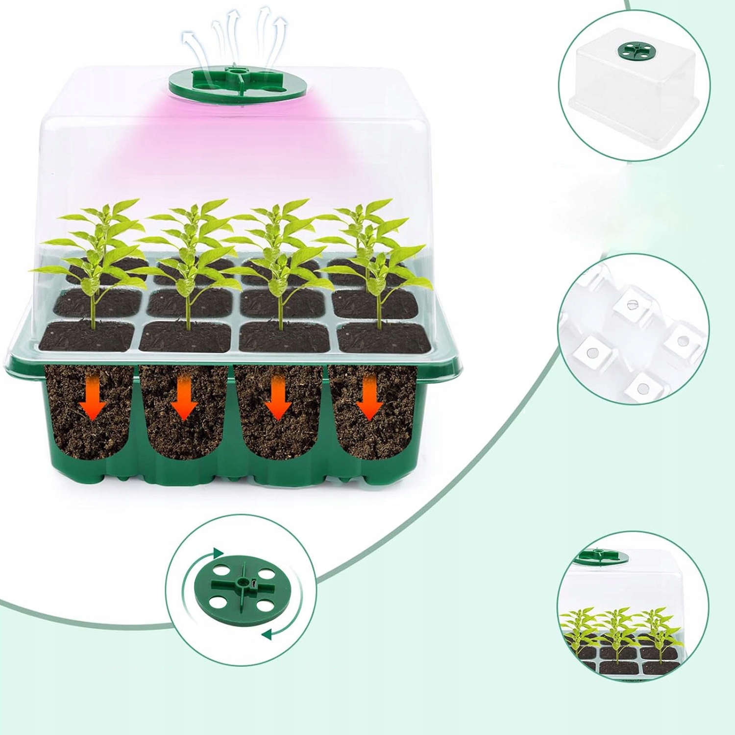 - 🌱Górna pokrywa ma okrągłe otwory wentylacyjne, które wspomagają cyrkulację powietrza w celu wspierania wzrostu nasion, a górna pokrywa ma podwyższoną konstrukcję, aby Zapewnic Dużo miejsca na wzrost nasion.