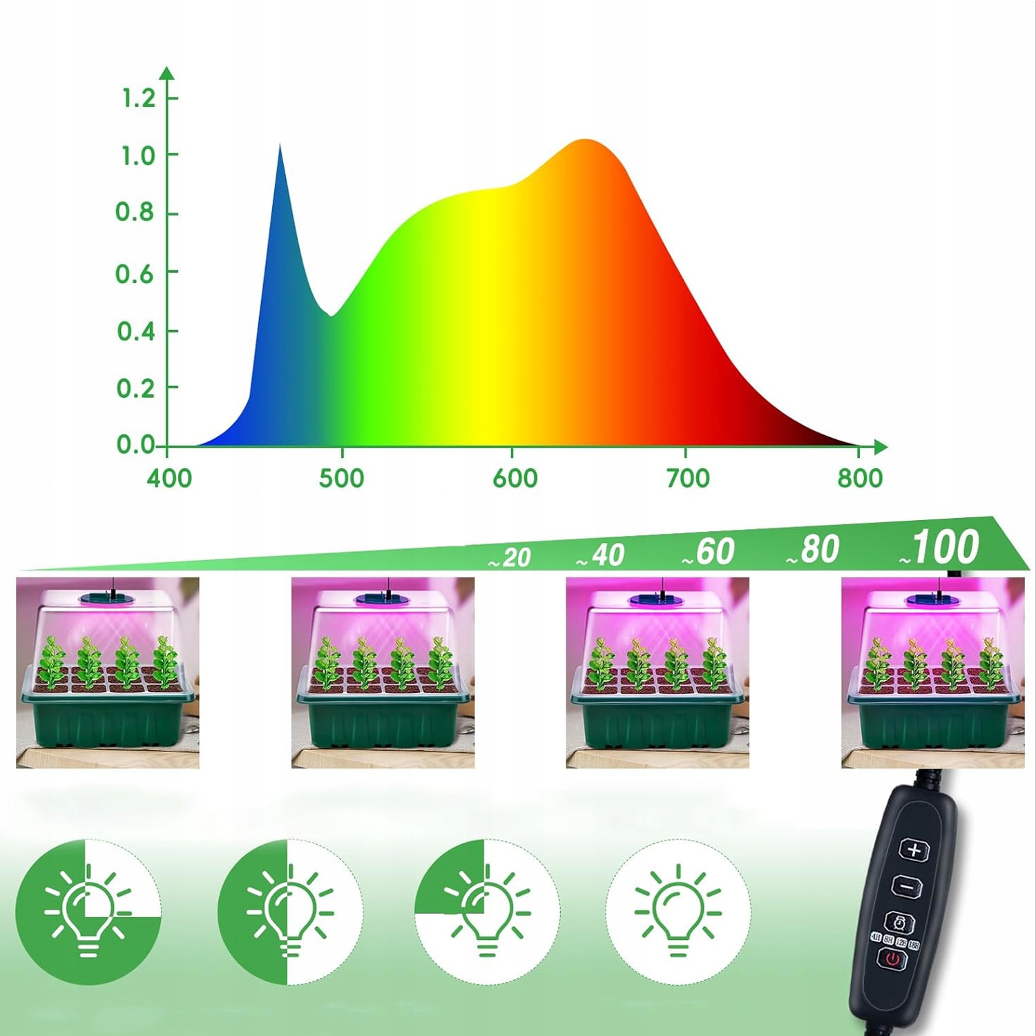 - Ідеально підходить для запуску насіння, проростання насіння, саджанців, соковиті насіння для розсадів та клональних оновлень.